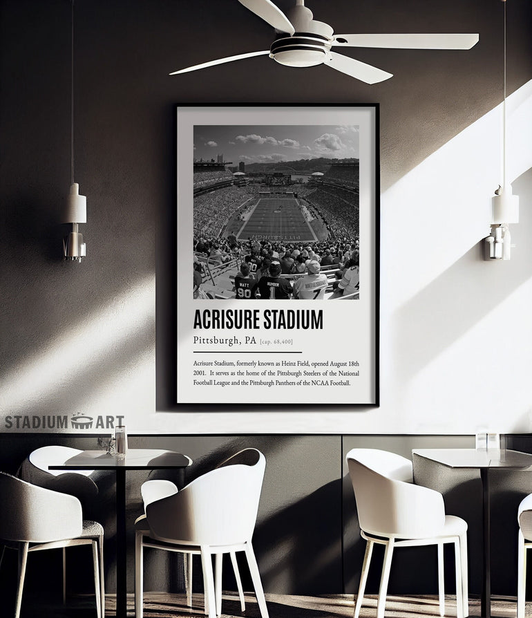 Acrisure Stadium Print, Pittsburgh Steelers Poster/Canvas, Seat View, B&W Modern Art, Football Wall Art Decor, Game Day Keepsake
