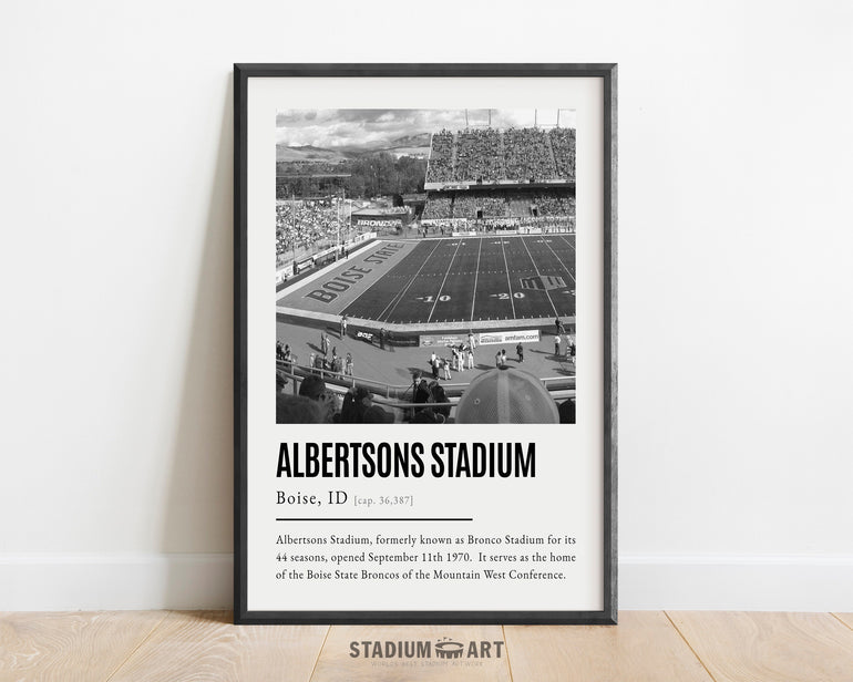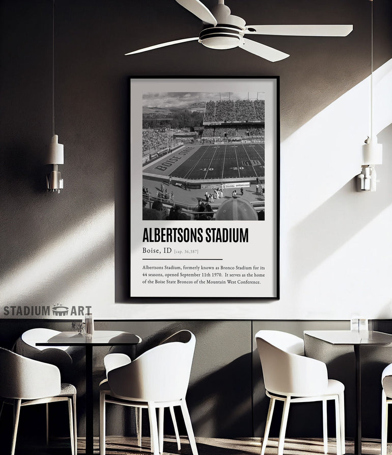 Albertsons Stadium Print, Boise State Broncos Poster/Canvas, Seat View, B&W Modern Art, Football Wall Art Decor, Game Day Keepsake