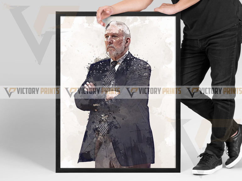 Gregg Popovich Poster/Canvas | Basketball Man Cave Art, Basketball Sports Room Decor, Fan gifts, Digital Download