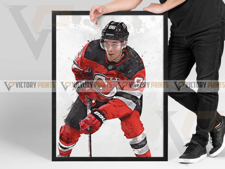 Jack Hughes Poster/Canvas | Hockey Man Cave Art, Sports Room Decor, Digital Files Available