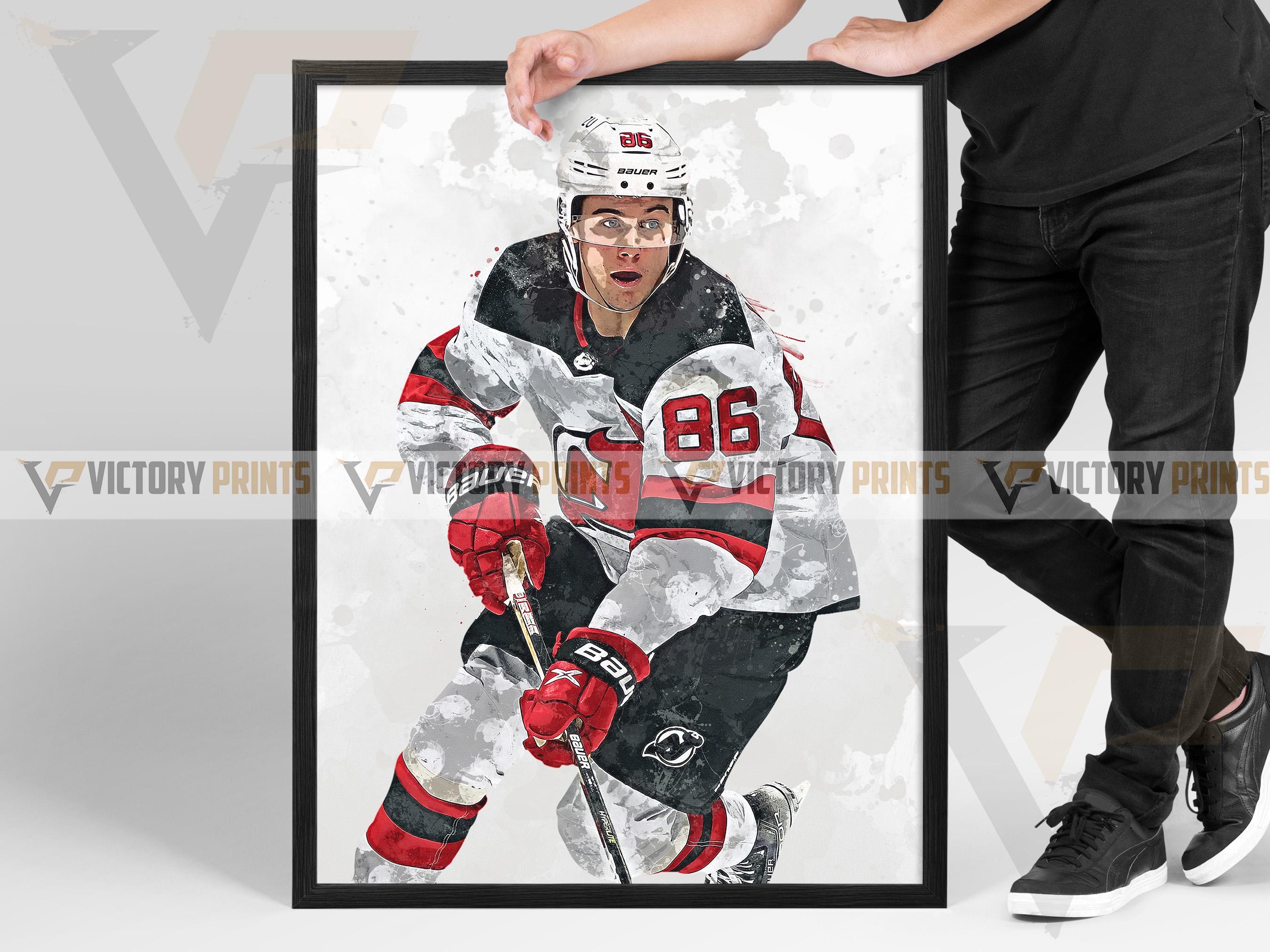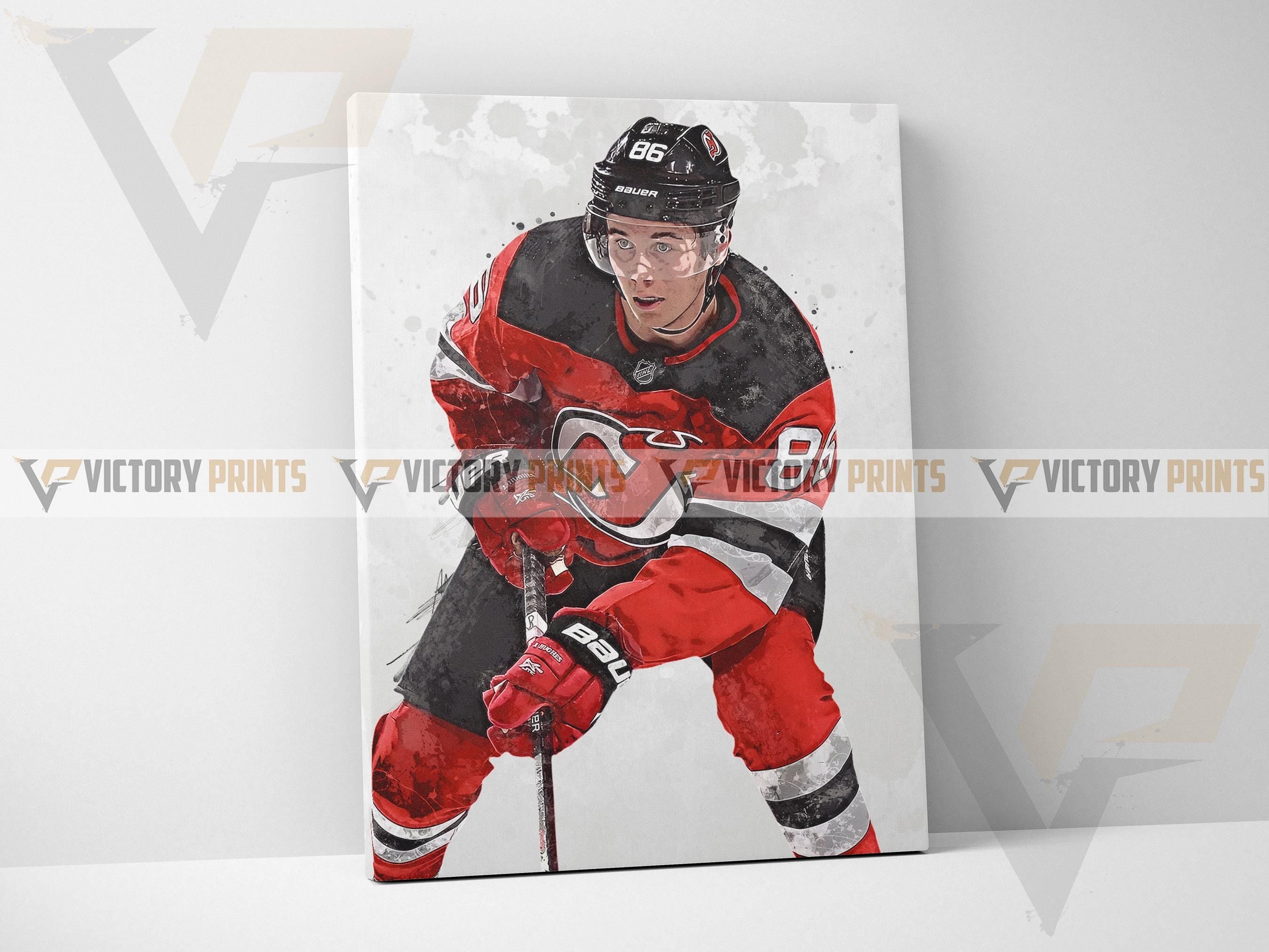 Jack Hughes Poster/Canvas | Hockey Man Cave Art, Sports Room Decor, Digital Files Available