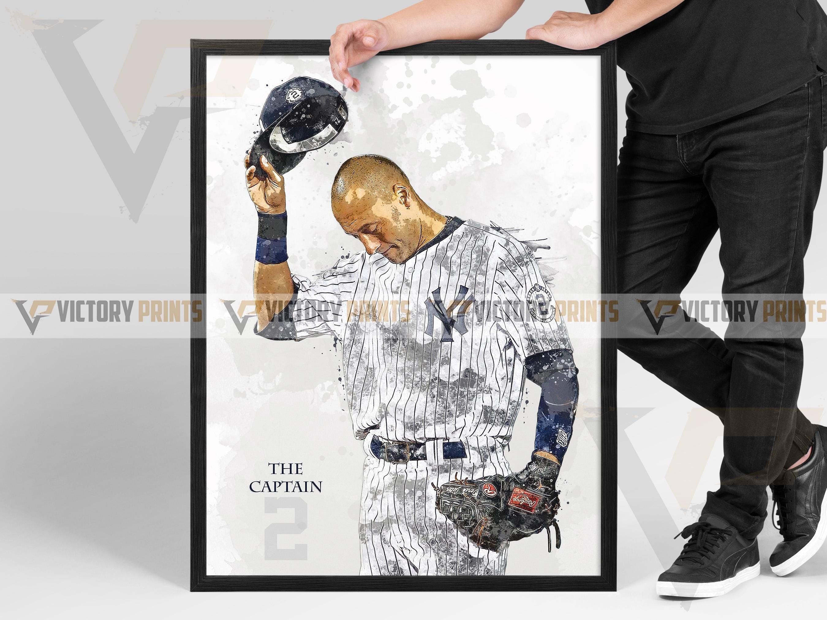 Derek Jeter Hat Tip The Captain Poster/Canvas | Baseball Man Cave Art, Sports Room Decor, Digital Files Available