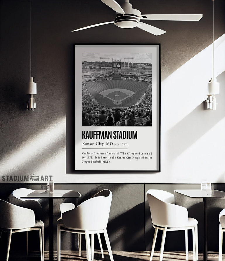 Kauffman Stadium Print, Kansas City Royals Poster/Canvas, Seat View, B&W Modern Art, Baseball Home Decor, Game Day Keepsake