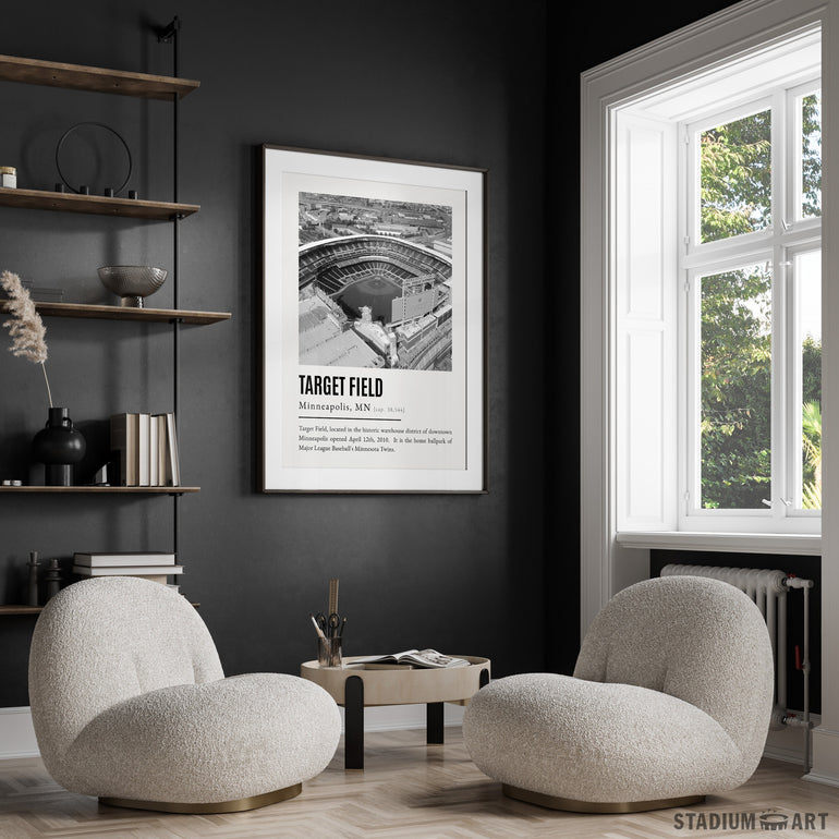 Target Field Print, Minnesota Twins Poster/Canvas, Aerial View, B&W Modern Art, Baseball Home Decor, Game Day Keepsake