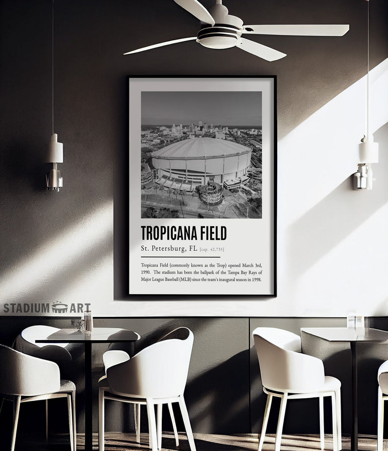Tropicana Field Print, Tampa Bay Rays Poster/Canvas, Aerial View, B&W Modern Art, Baseball Home Decor, Game Day Keepsake