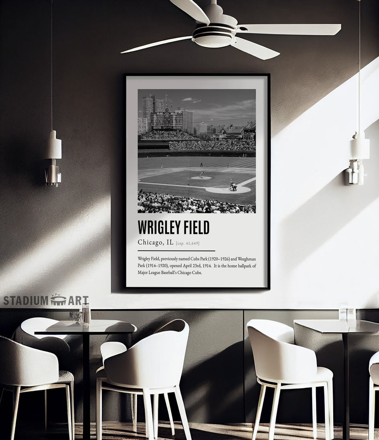 Wrigley Field Print, Chicago Cubs Poster/Canvas, Seat View, B&W Modern Art, Baseball Home Decor, Game Day Keepsake