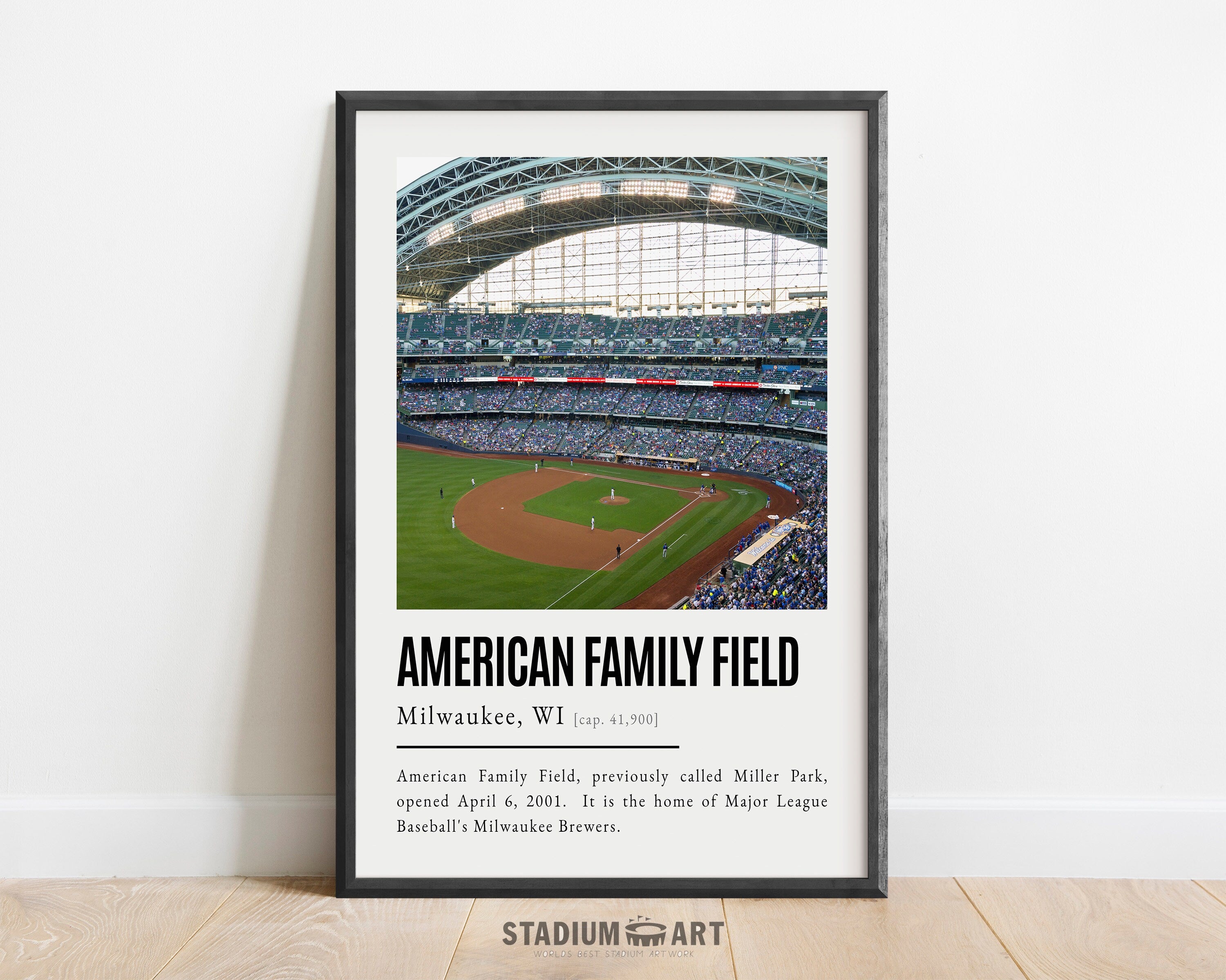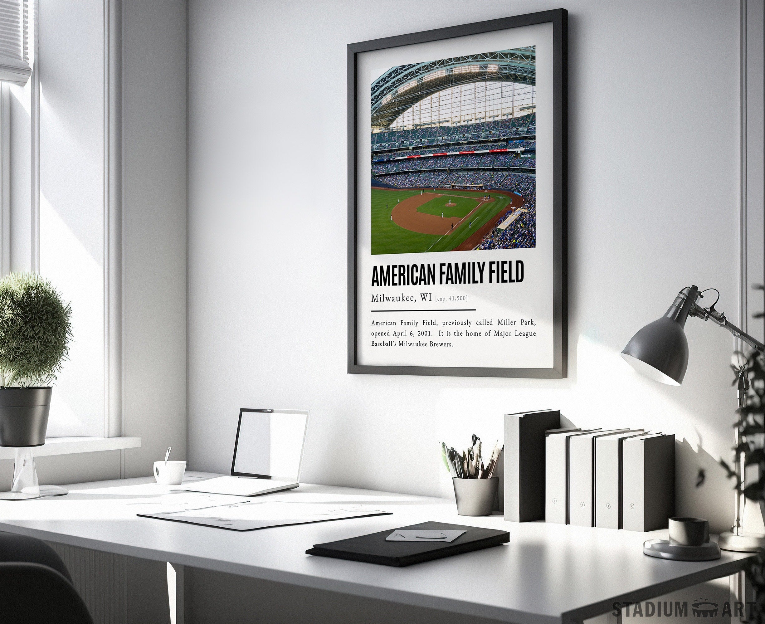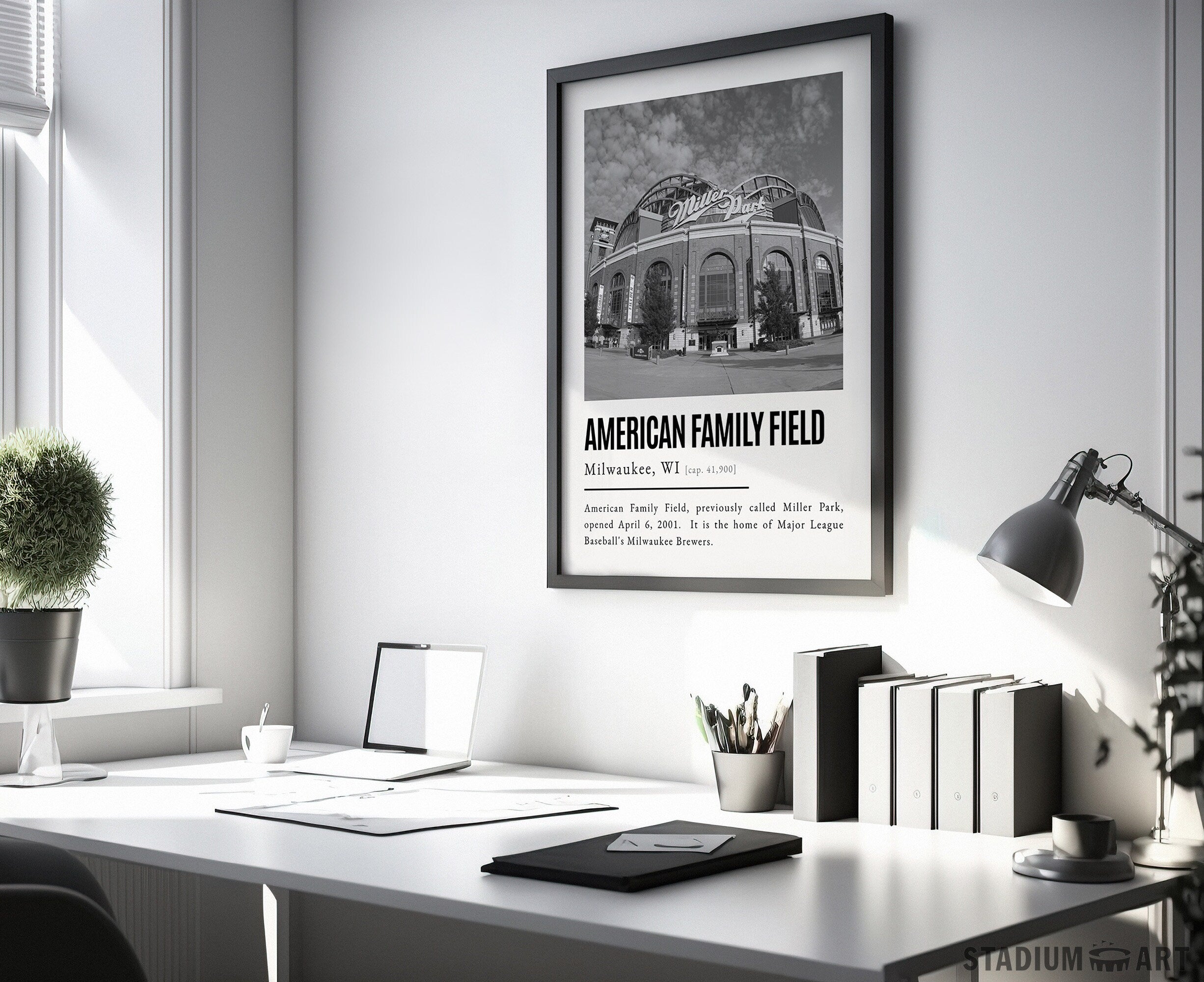 American Family Field Print, Milwaukee Brewers Poster/Canvas, Front View, B&W Modern Art, Baseball Home Decor, Game Day Keepsake