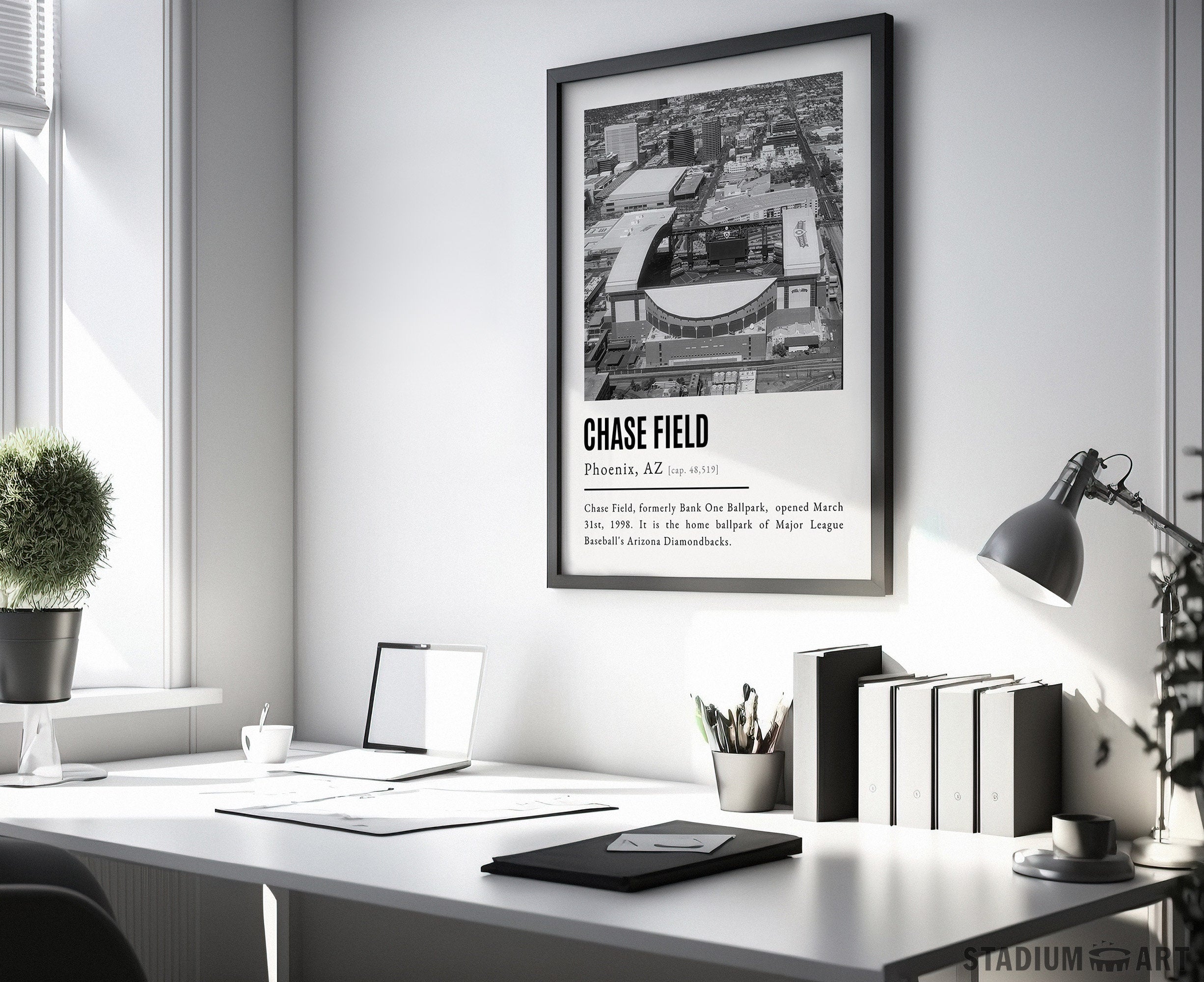 Chase Field Print, Arizona Diamondbacks Poster/Canvas, Aerial View, B&W Modern Art, Baseball Home Decor, Game Day Keepsake
