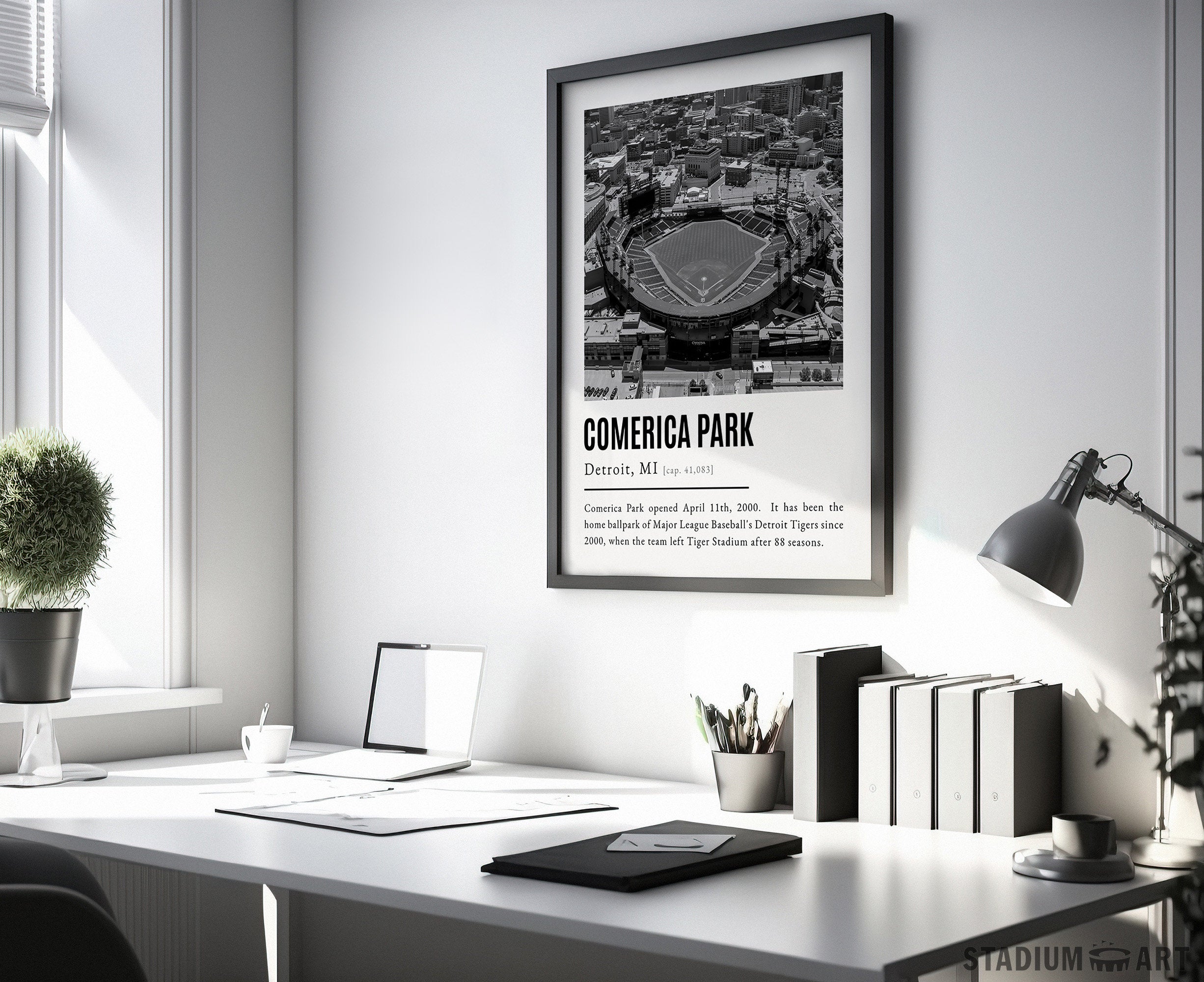 Comerica Park Print, Detroit Tigers Poster/Canvas, Aerial View, B&W Modern Art, Baseball Home Decor, Game Day Keepsake