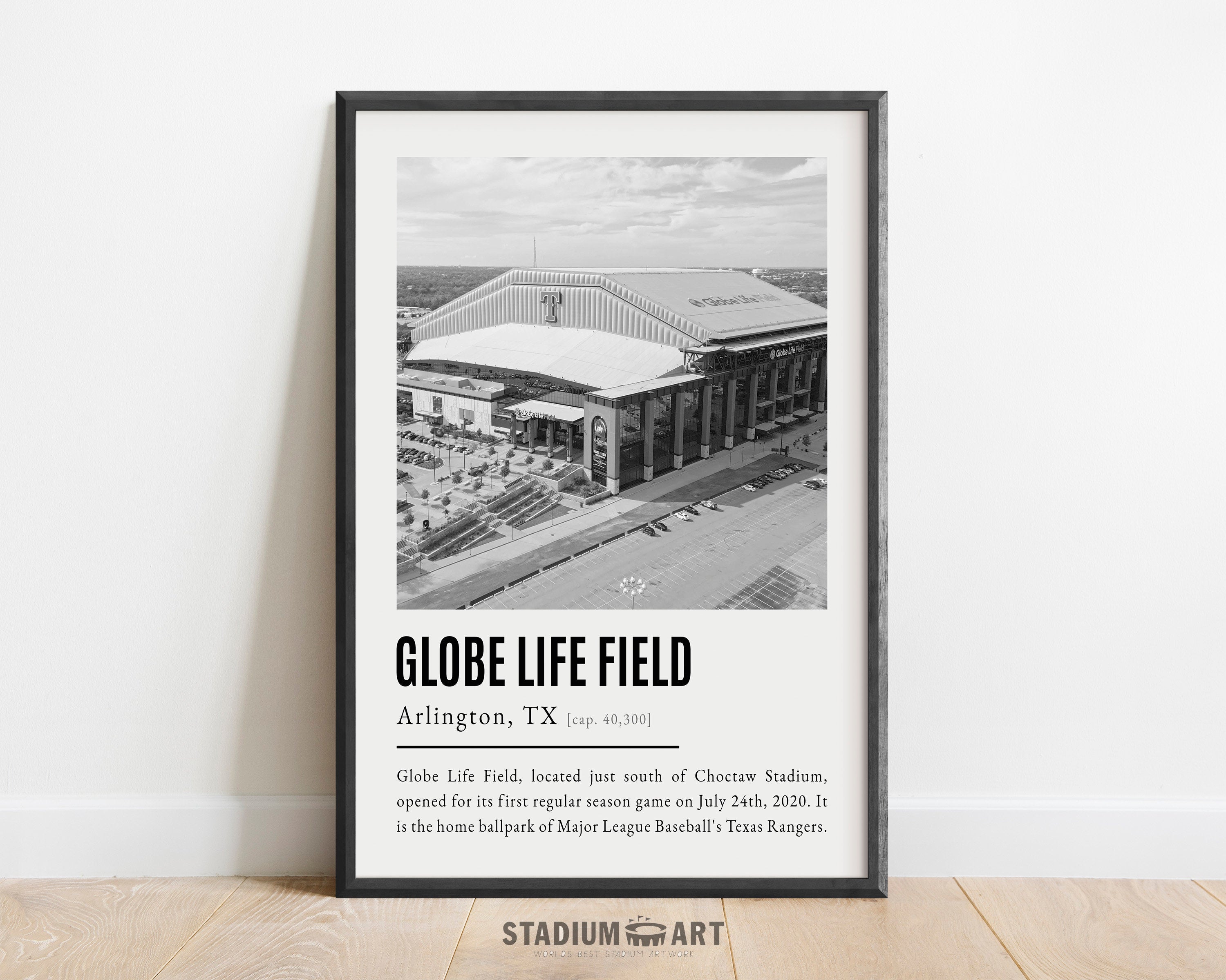 Globe Life Field Print, Texas Rangers Poster/Canvas, Seat View, B&W Modern Art, Baseball Home Decor, Game Day Keepsake