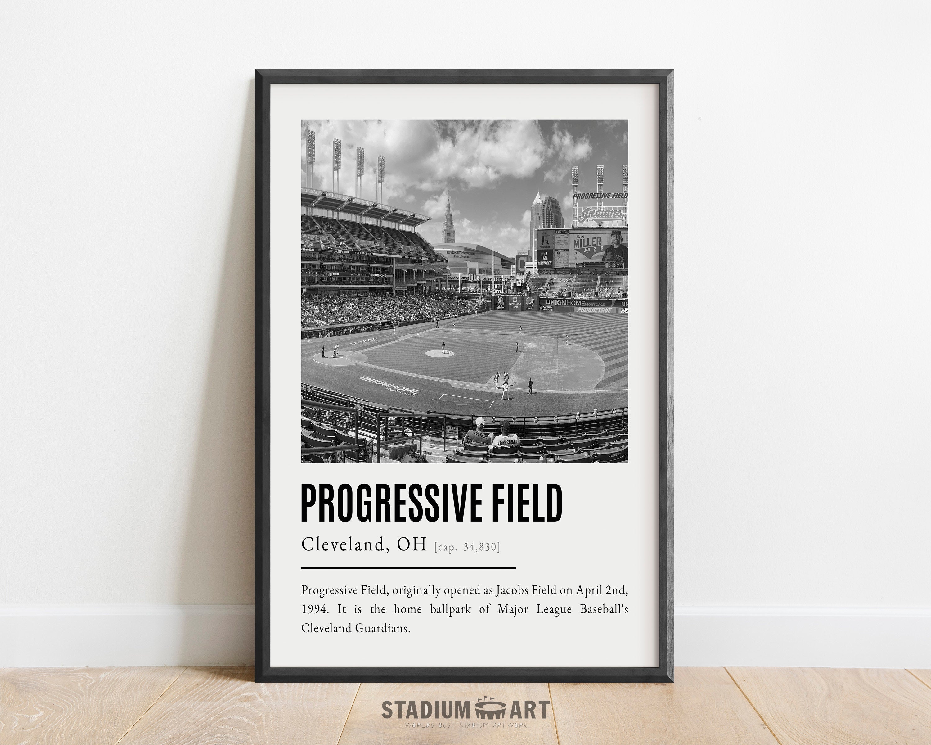 Progressive Field Print, Cleveland Guardians Poster/Canvas, Seat View (v2), B&W Modern Art, Baseball Home Decor, Game Day Keepsake