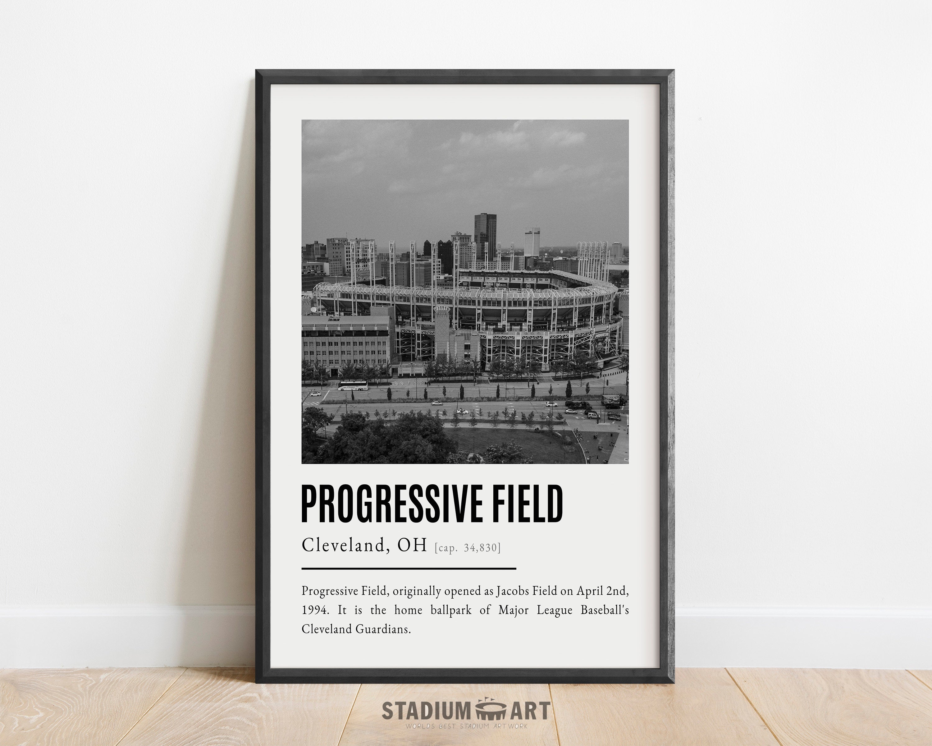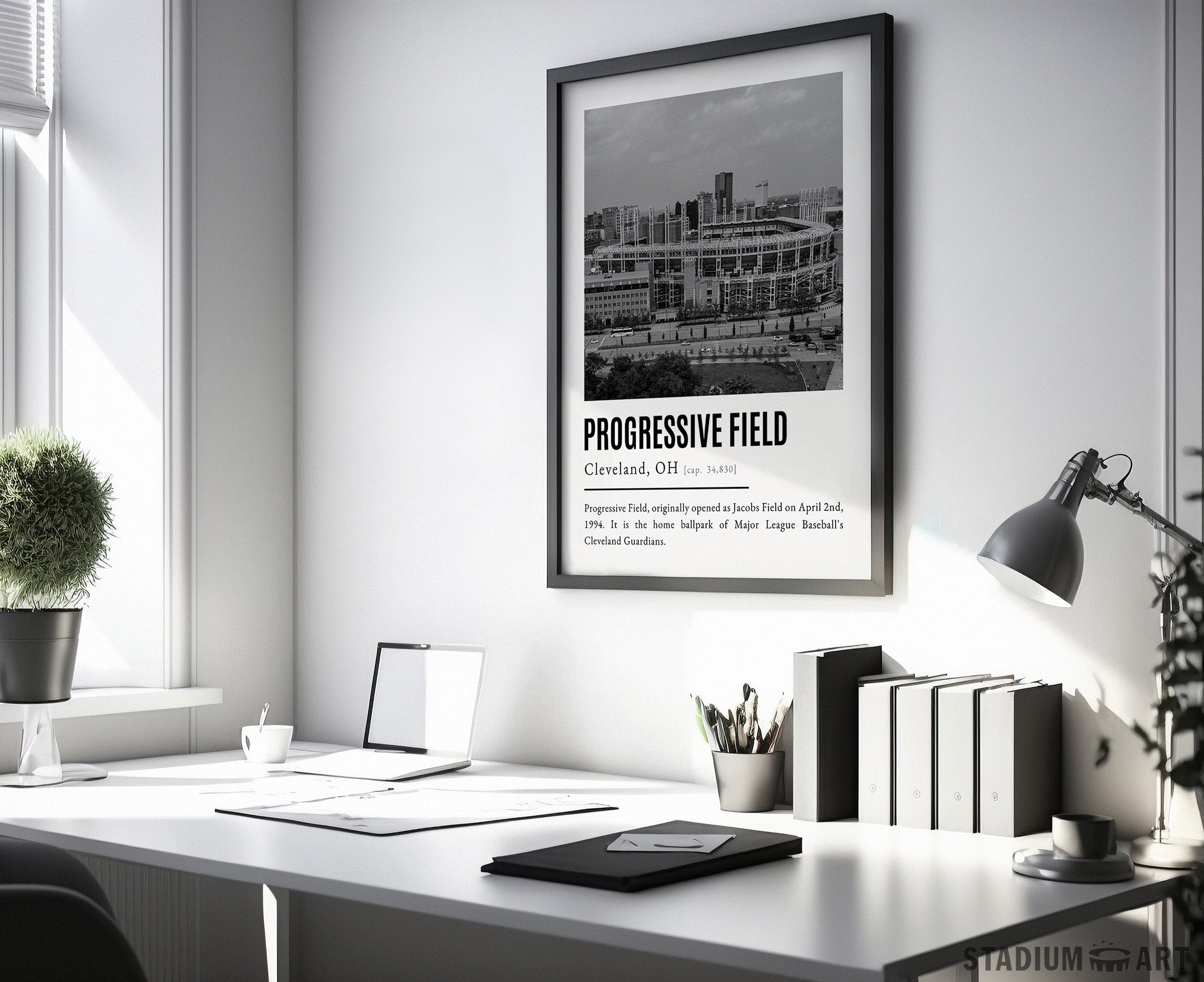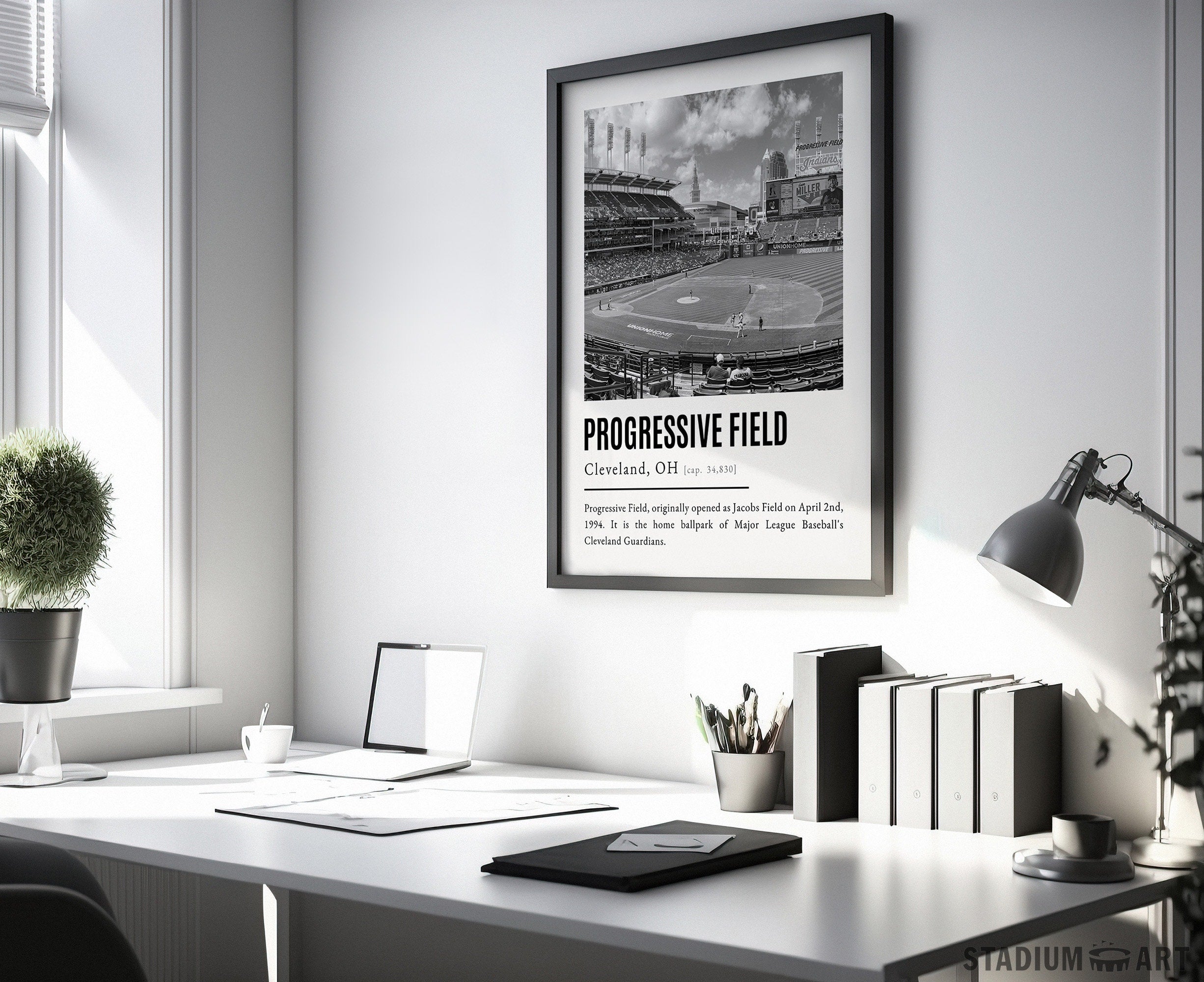 Progressive Field Print, Cleveland Guardians Poster/Canvas, Aerial View, B&W Modern Art, Baseball Home Decor, Game Day Keepsake