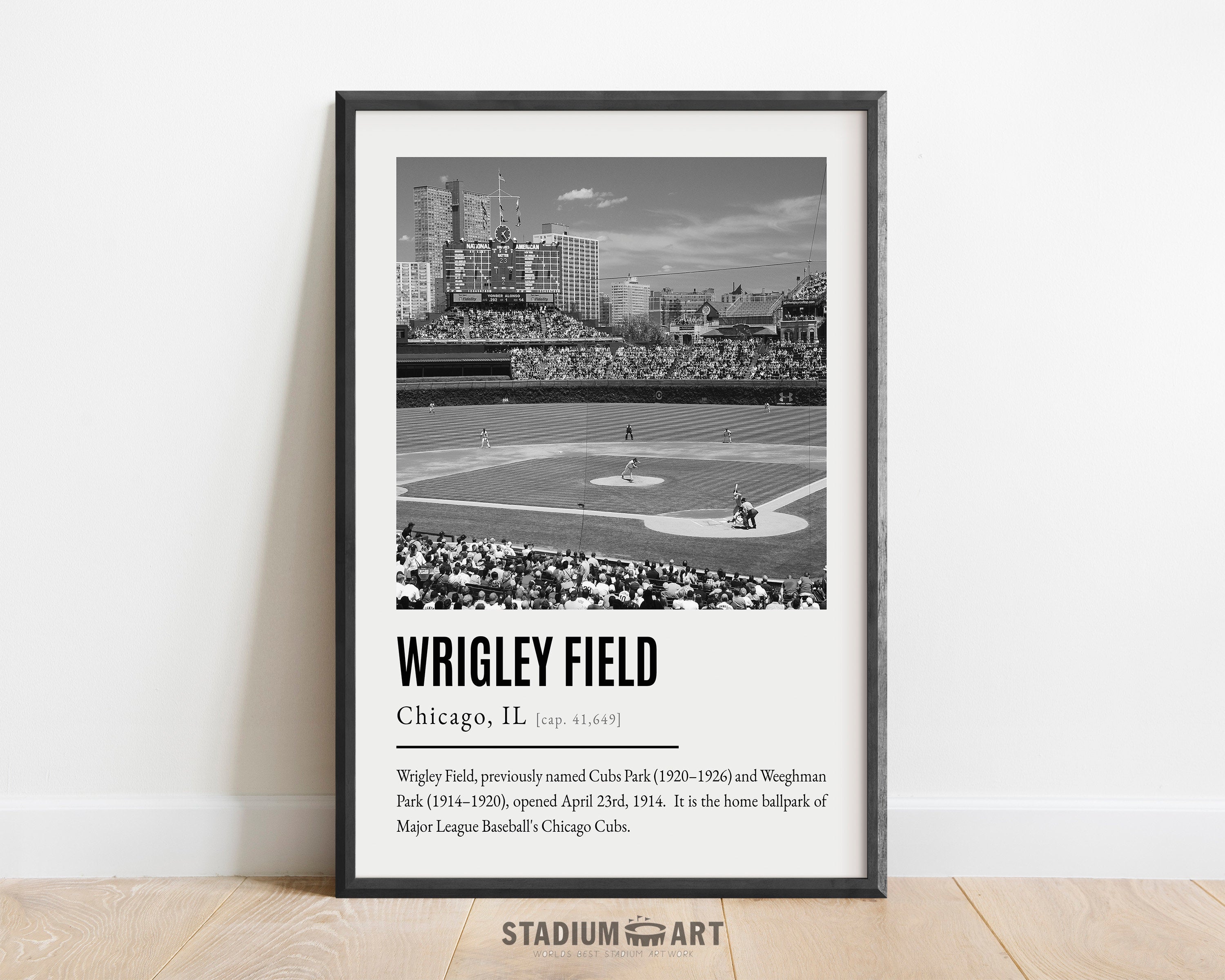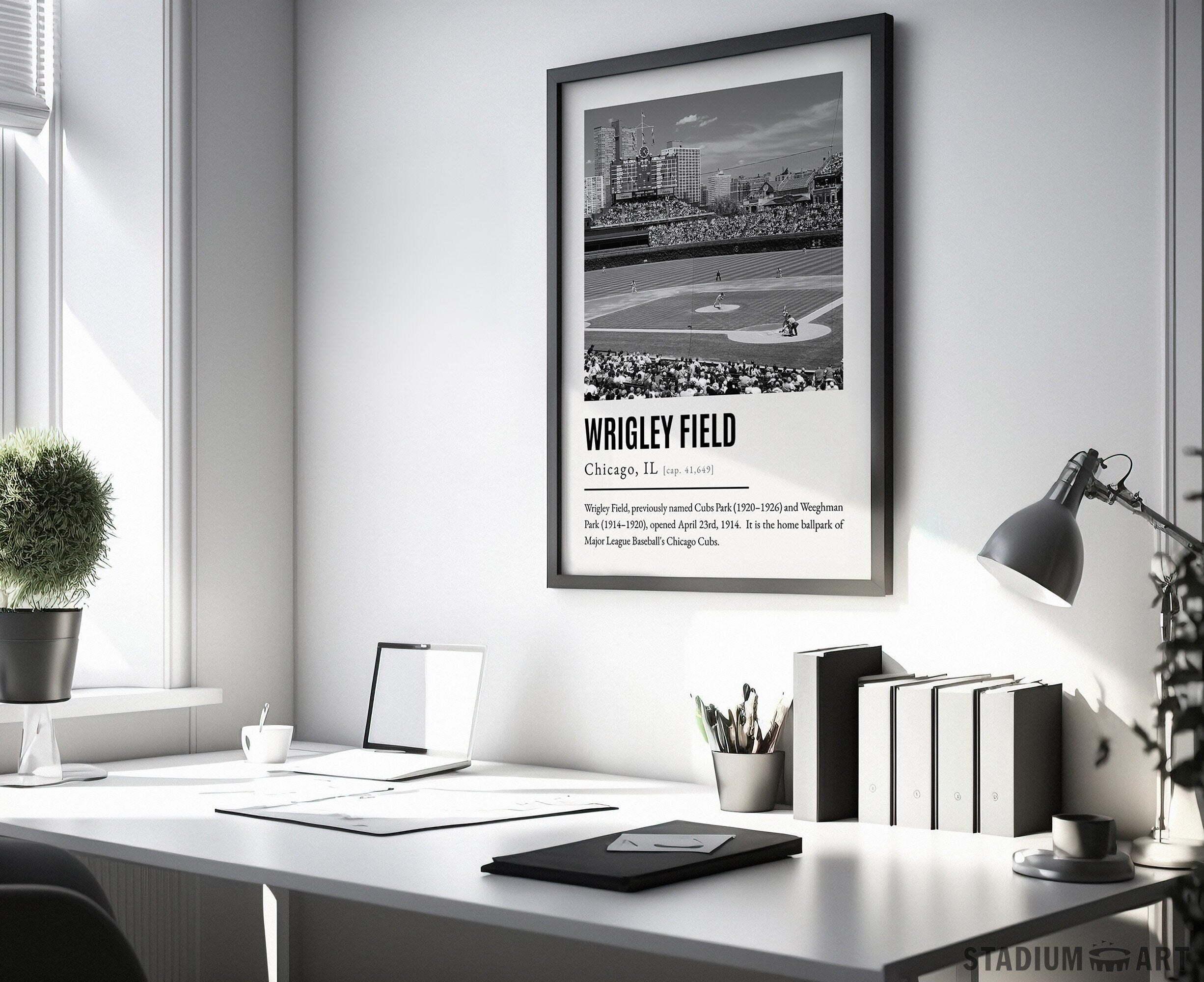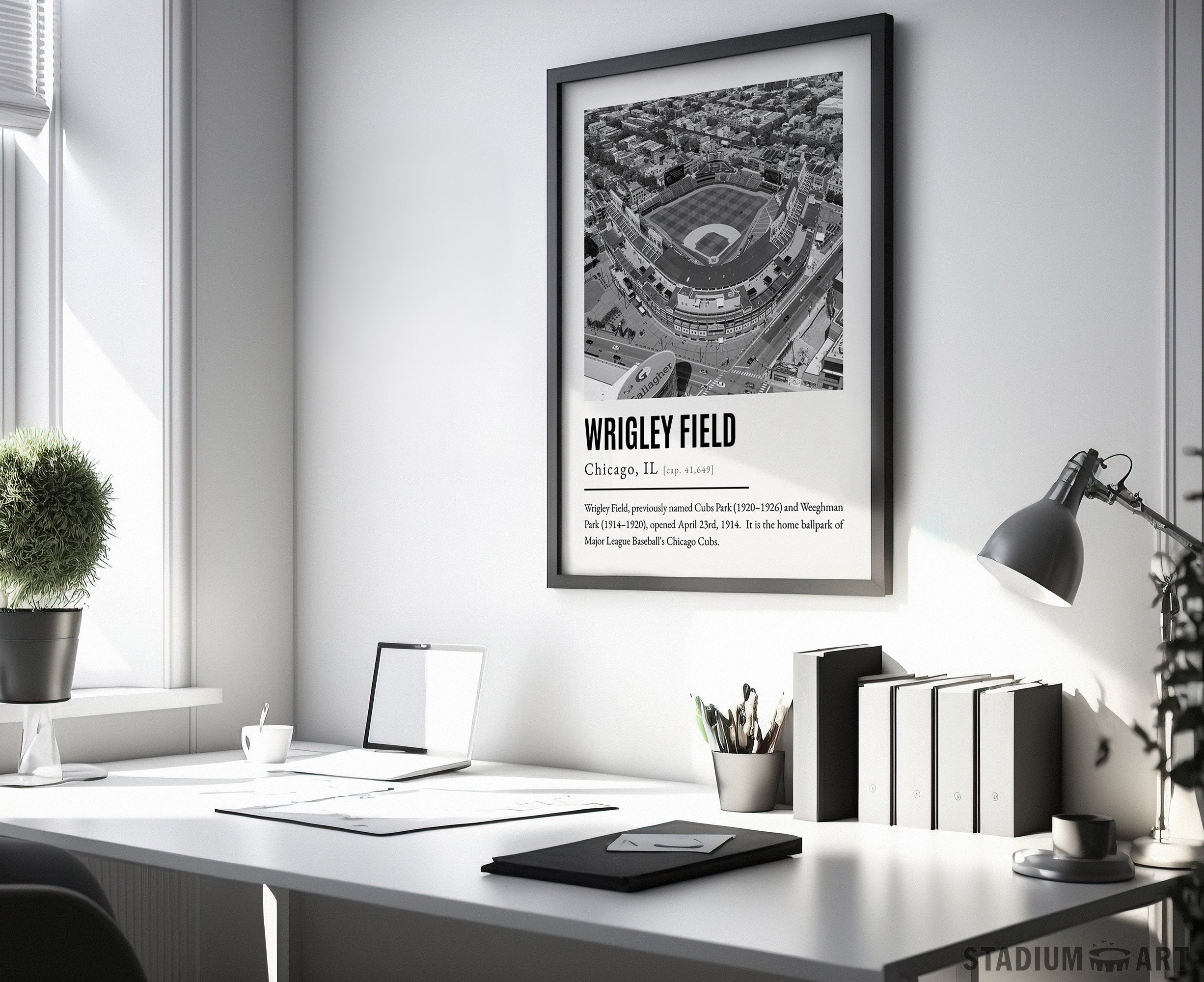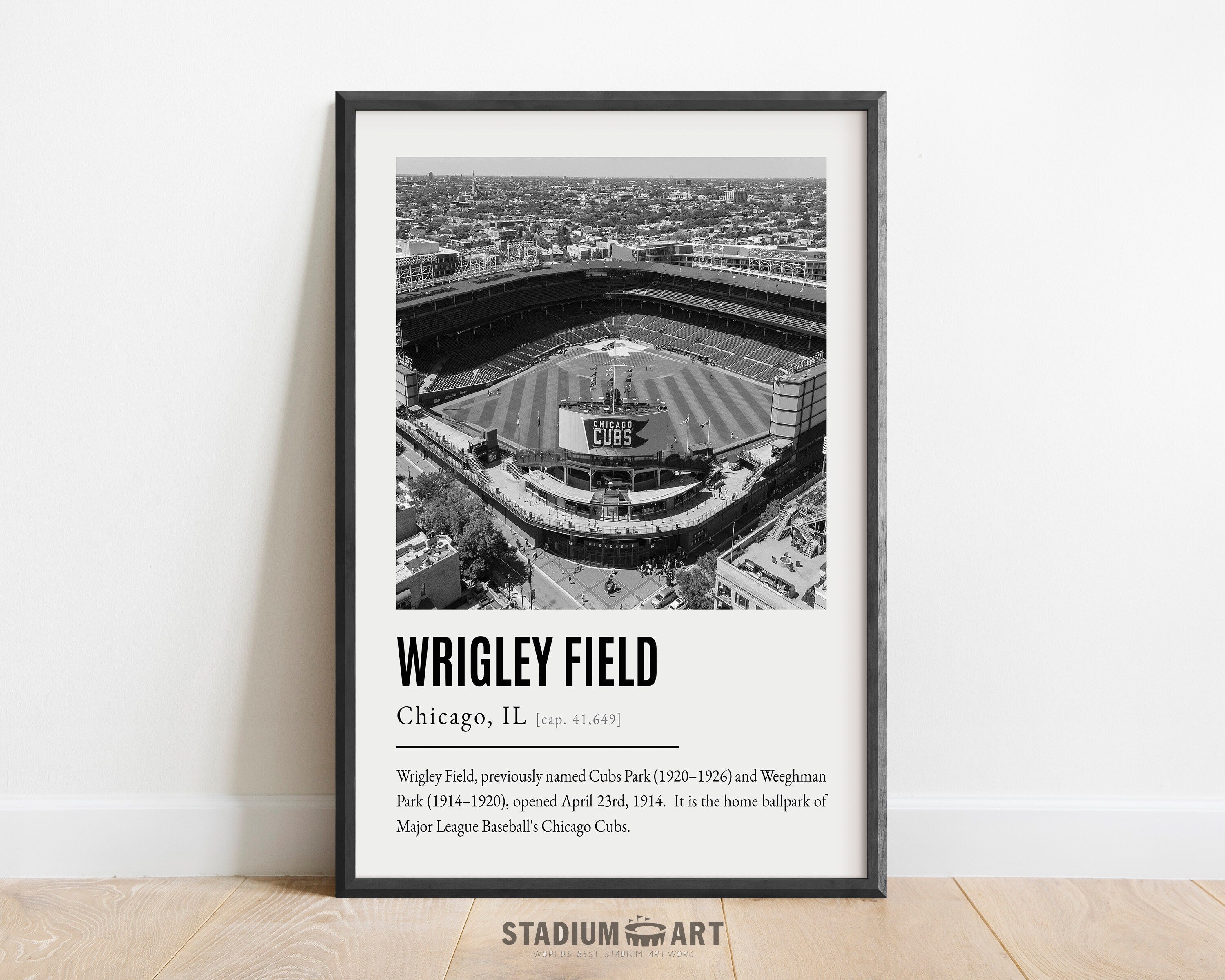 Wrigley Field Print, Chicago Cubs Poster/Canvas, Aerial View, B&W Modern Art, Baseball Home Decor, Game Day Keepsake