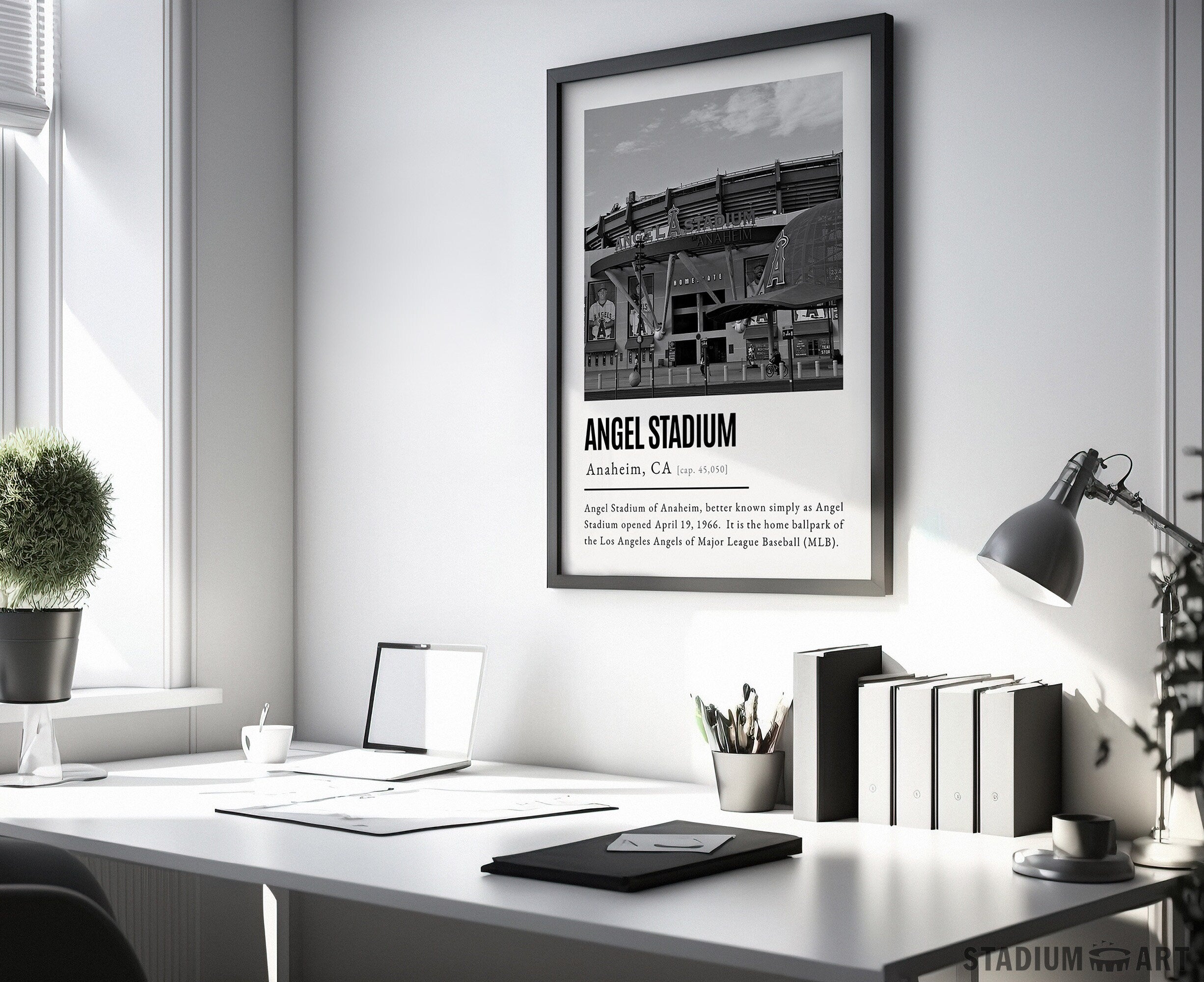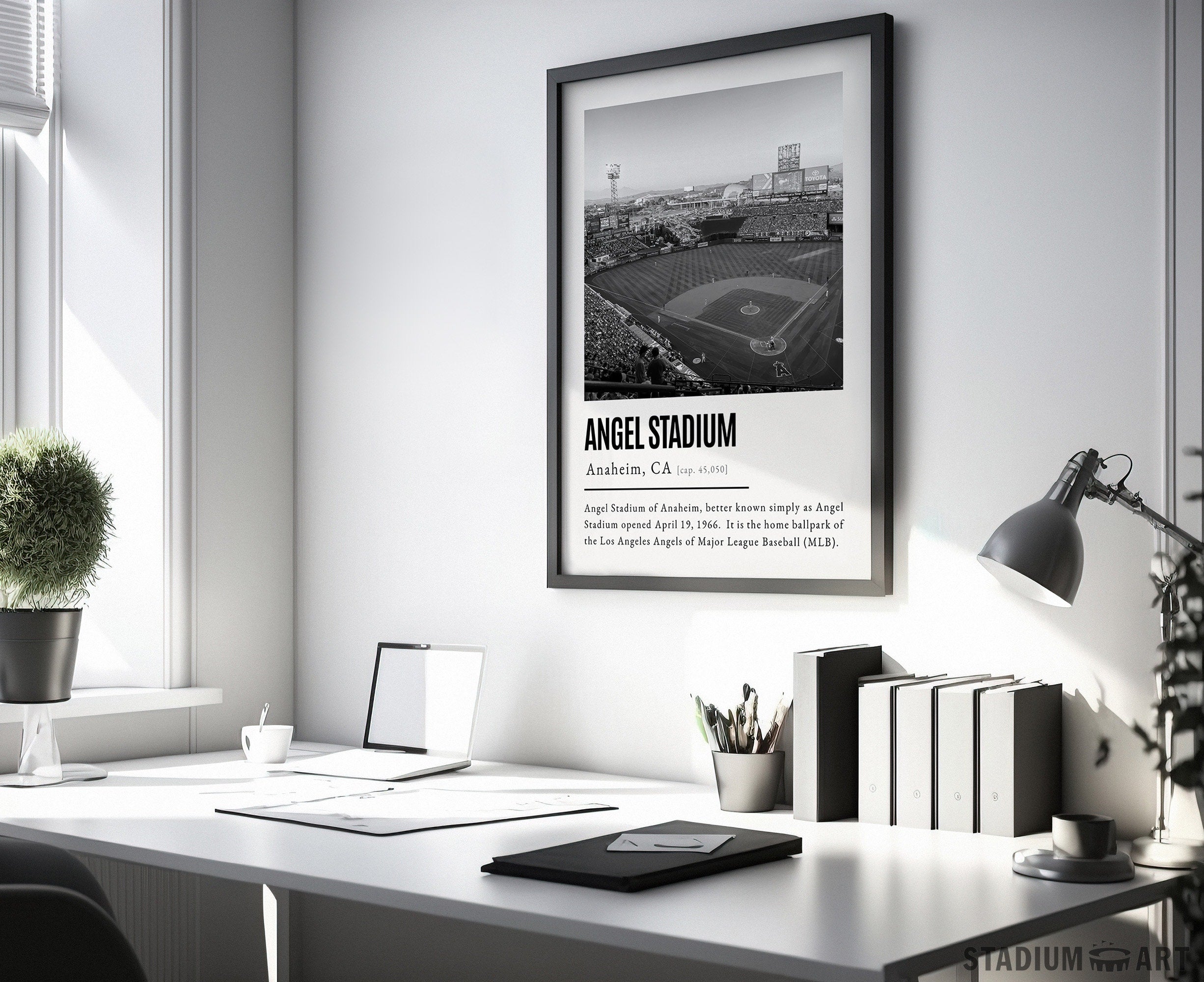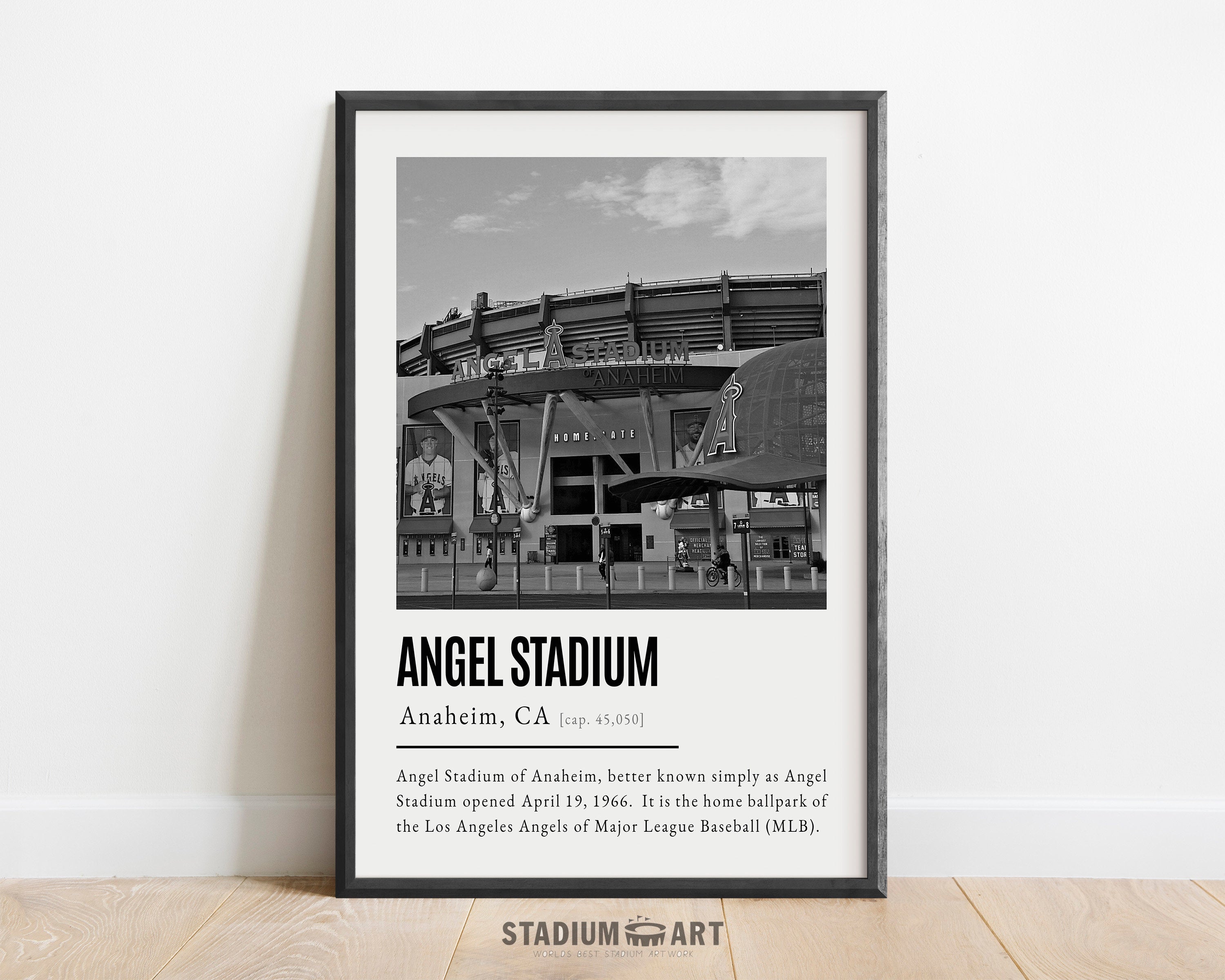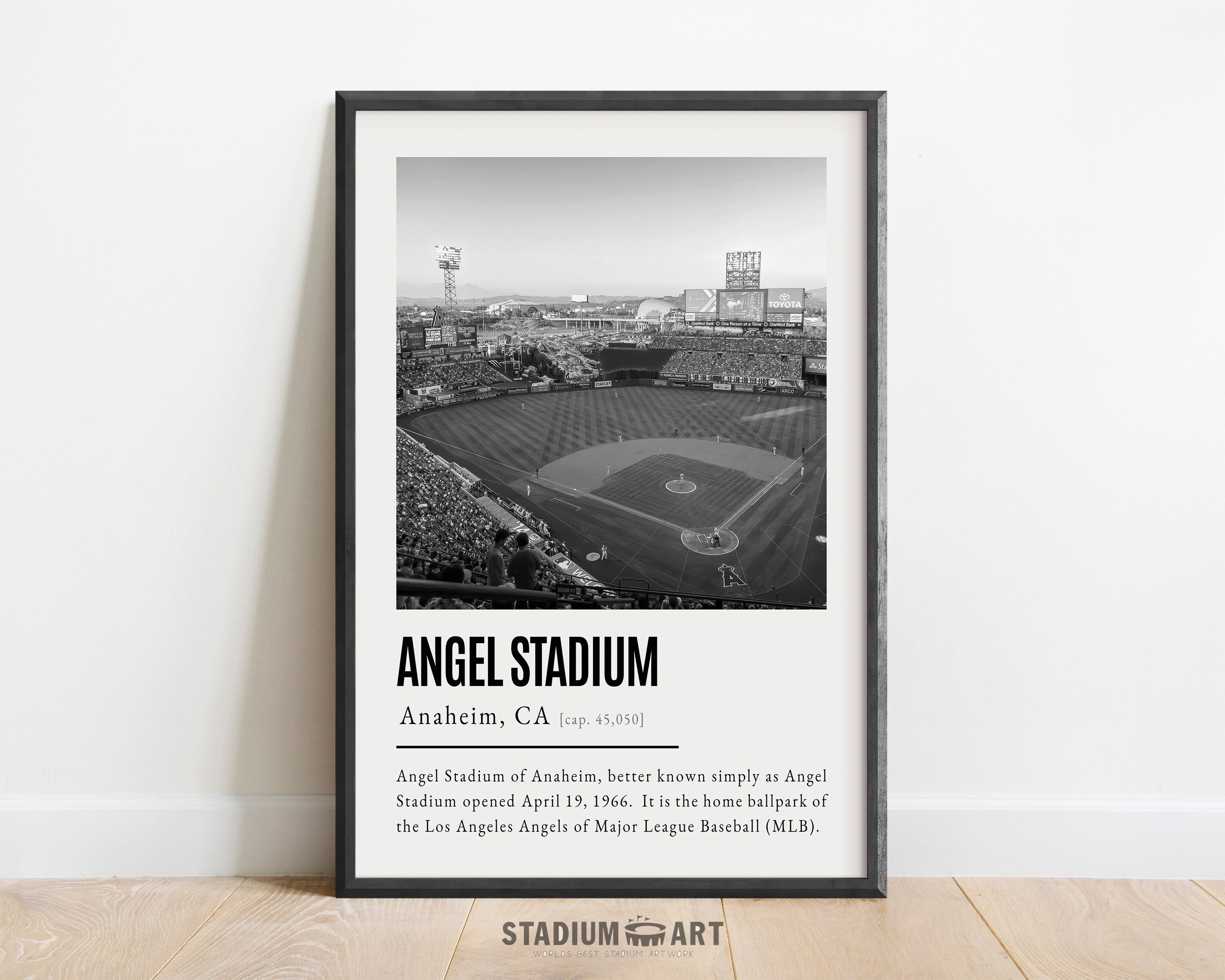 Angel Stadium Print, Los Angeles Angels Poster/Canvas, Front View, B&W Modern Art, Baseball Home Decor, Game Day Keepsake