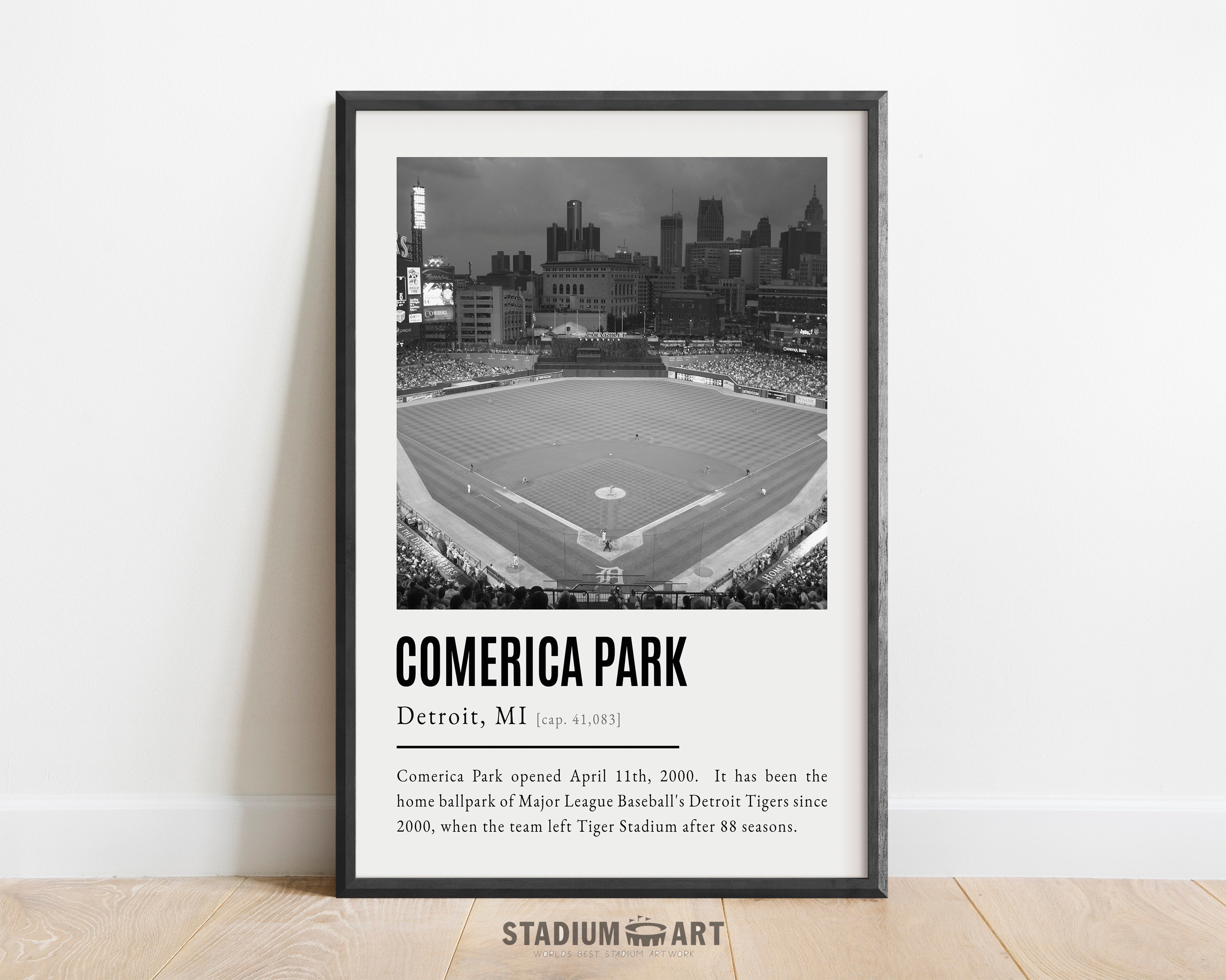 Comerica Park Print, Detroit Tigers Poster/Canvas, Seat View, B&W Modern Art, Baseball Home Decor, Game Day Keepsake