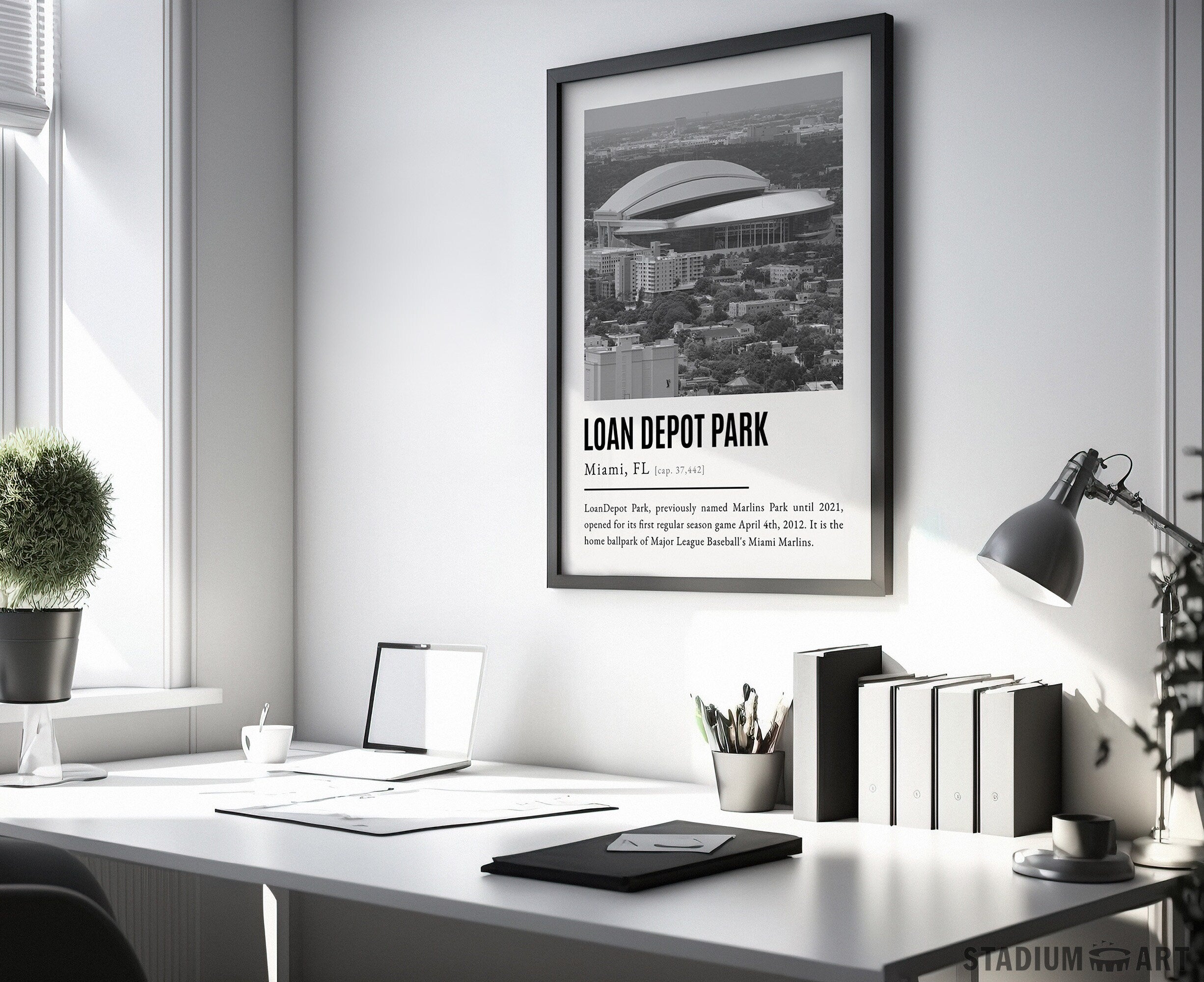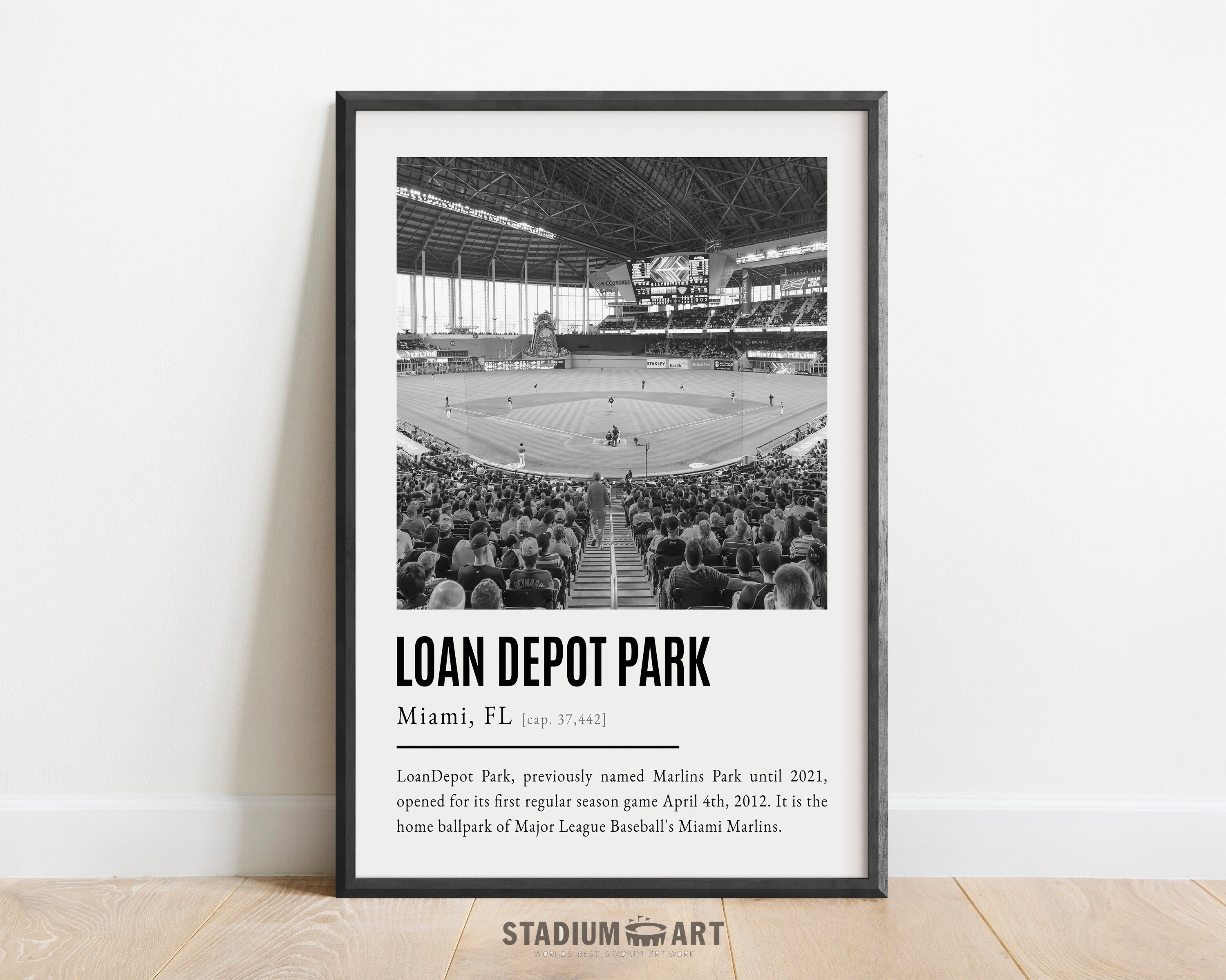 Loan Depot Park Print, Miami Marlins Poster/Canvas, Seat View, B&W Modern Art, Baseball Home Decor, Game Day Keepsake