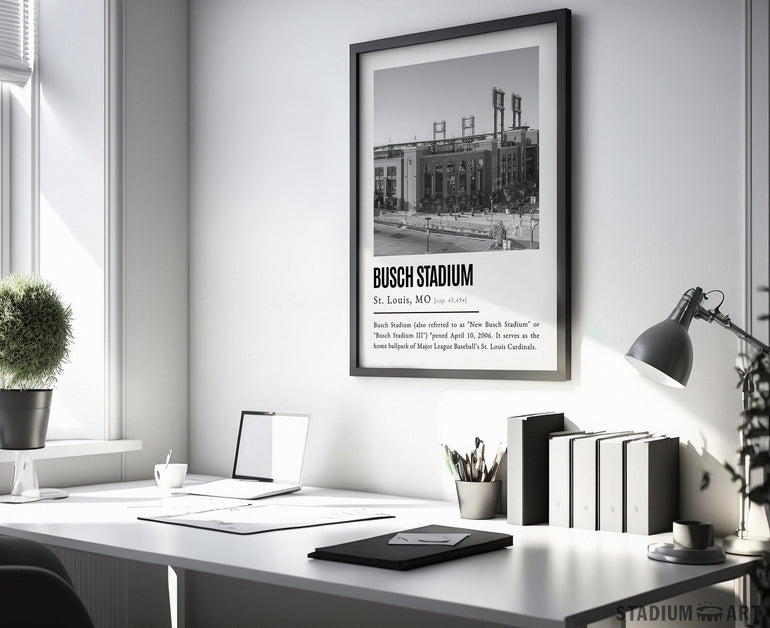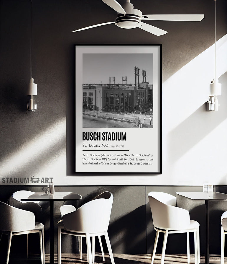 Busch Stadium Print, St. Louis Cardinals Poster/Canvas, Front View, B&W Modern Art, Baseball Home Decor, Game Day Keepsake