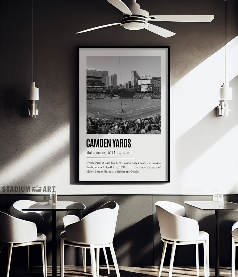 Camden Yards Print, Baltimore Orioles Poster/Canvas, Seat View (v2), B&W Modern Art, Baseball Home Decor, Game Day Keepsake