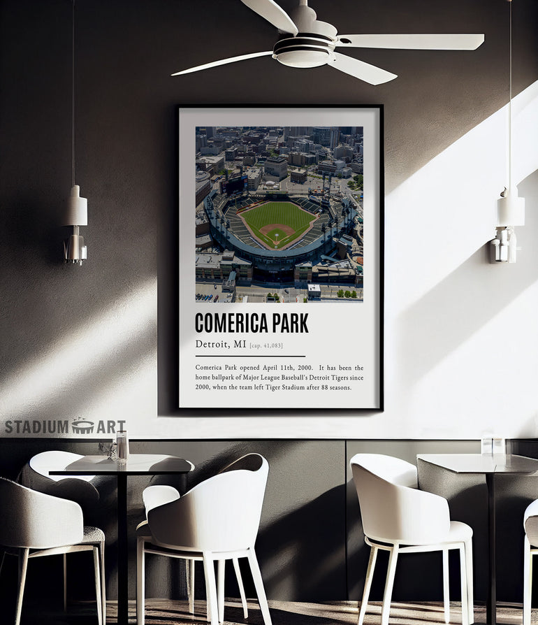 Comerica Park Print, Detroit Tigers Poster/Canvas, Aerial View, Modern Art, Baseball Home Decor, Game Day Keepsake