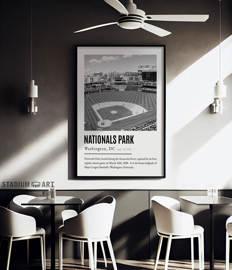 Nationals Park Print, Washington Nationals Poster/Canvas, Seat View (v2), B&W Modern Art, Baseball Home Decor, Game Day Keepsake