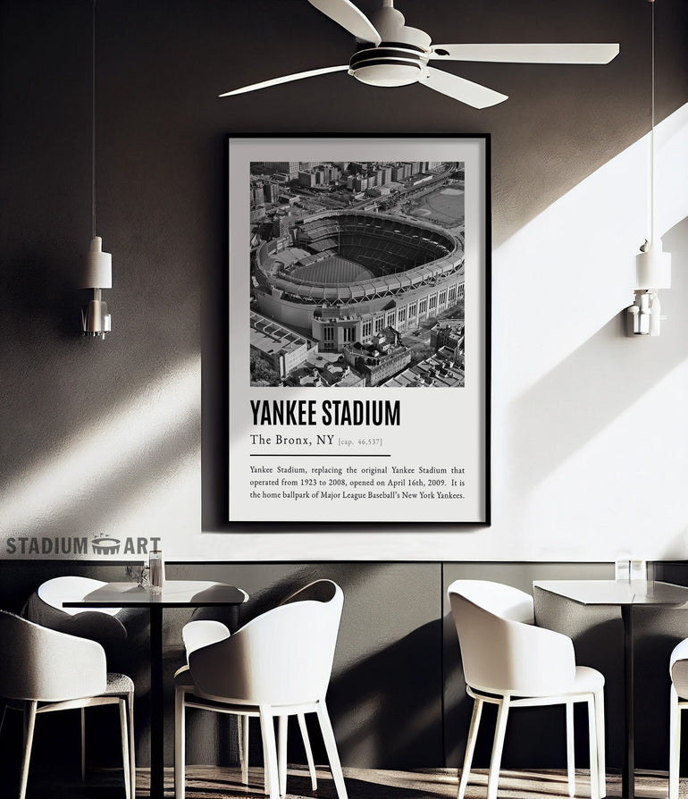 Yankees Stadium Print, New York Yankees Poster/Canvas, Aerial View, B&W Modern Art, Baseball Home Decor, Game Day Keepsake