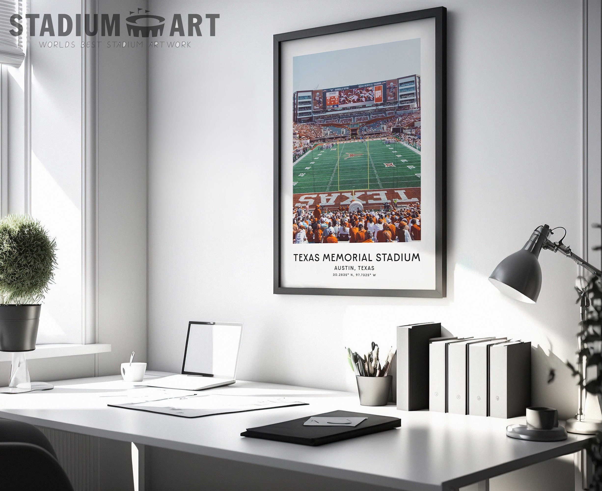 Texas Memorial Stadium Print, Longhorns Poster/Canvas, GPS College Football Stadium, Modern Travel Art, Football Fan, Office & Kids Room Decor