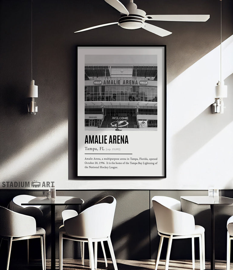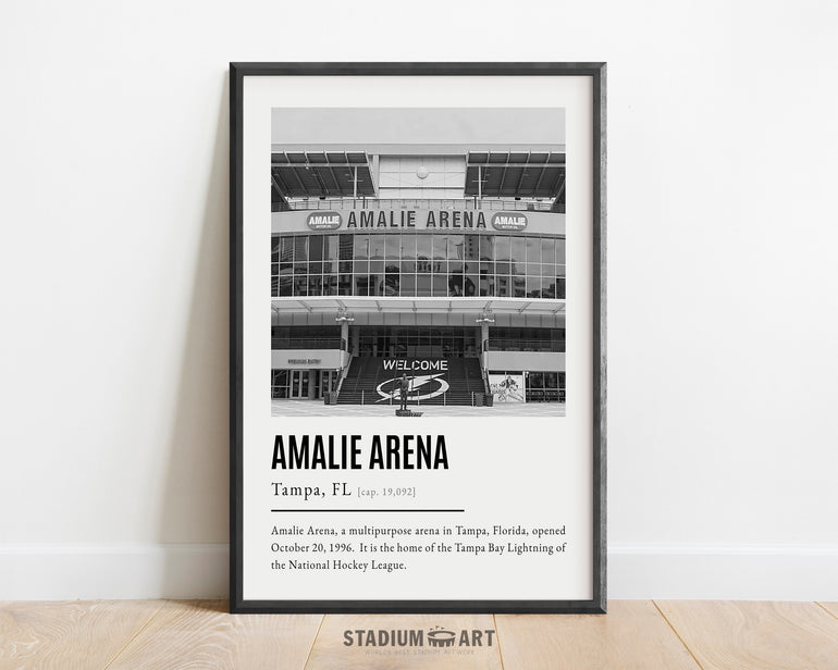 Amalie Arena Print, Tampa Bay Lightning Poster/Canvas, Exterior Front View, B&W Modern Art, Hockey Wall Art Home Decor, Game Day Keepsake
