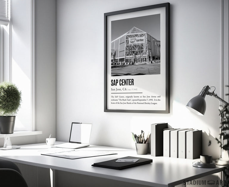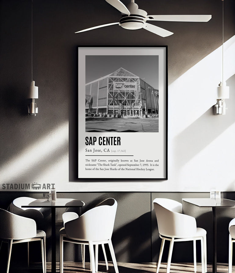 SAP Center Print, San Jose Sharks Poster/Canvas, Exterior View, B&W Modern Art, Hockey Wall Art Decor, Game Day Keepsake