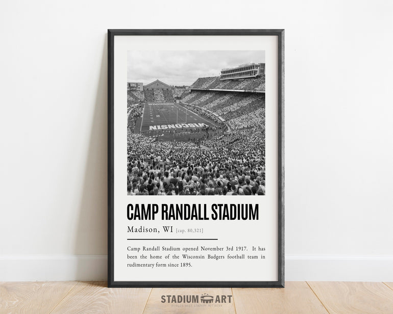 Camp Randall Stadium Print, Wisconsin Badgers Poster/Canvas, Seat View, B&W Modern Art, Football Wall Art Decor, Game Day Keepsake