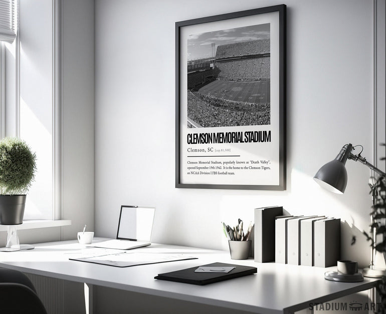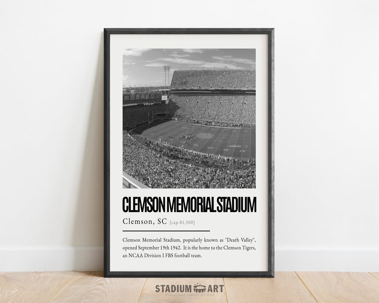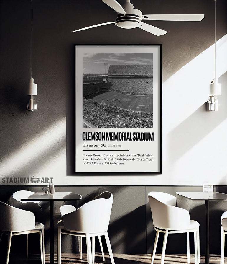 Clemson Memorial Stadium Print, Clemson Tigers Poster/Canvas, Seat View, B&W Modern Art, Football Wall Art Decor, Game Day Keepsake