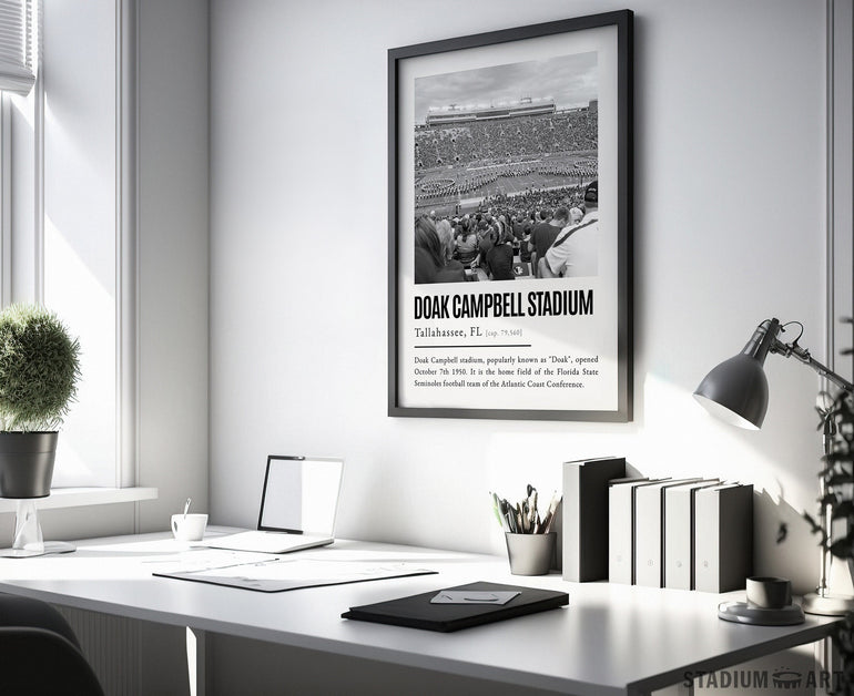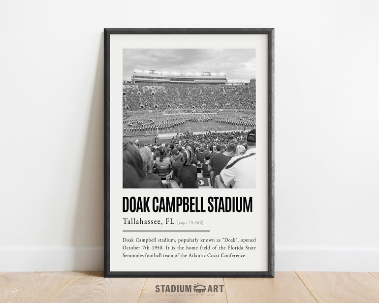 Doak Campbell Stadium Print, Florida State Seminoles Poster/Canvas, Seat View, B&W Modern Art, Football Wall Art Decor, Game Day Keepsake