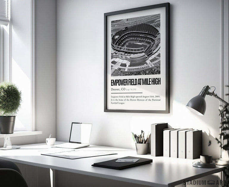 Empower Field at Mile High Print, Denver Broncos Poster/Canvas, Aerial View, B&W Modern Art, Football Wall Art Decor, Game Day Keepsake