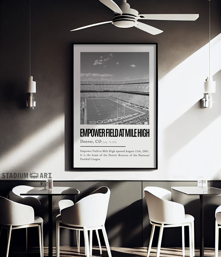 Empower Field at Mile High Print, Denver Broncos Poster/Canvas, Seat View, B&W Modern Art, Football Wall Art Decor, Game Day Keepsake