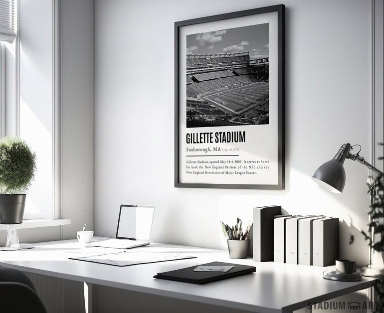 Gillette Stadium Print, New England Patriots Poster/Canvas, Seat View (v2), B&W Modern Art, Football Wall Art Decor, Game Day Keepsake