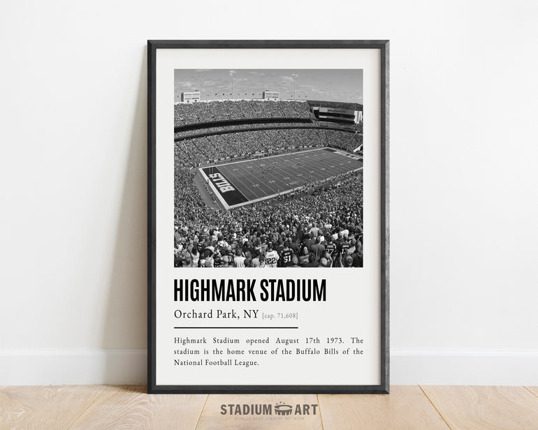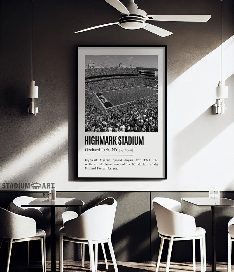 Highmark Stadium Print, Buffalo Bills Poster/Canvas, Seat View (v2), B&W Modern Art, Football Wall Art Decor, Game Day Keepsake