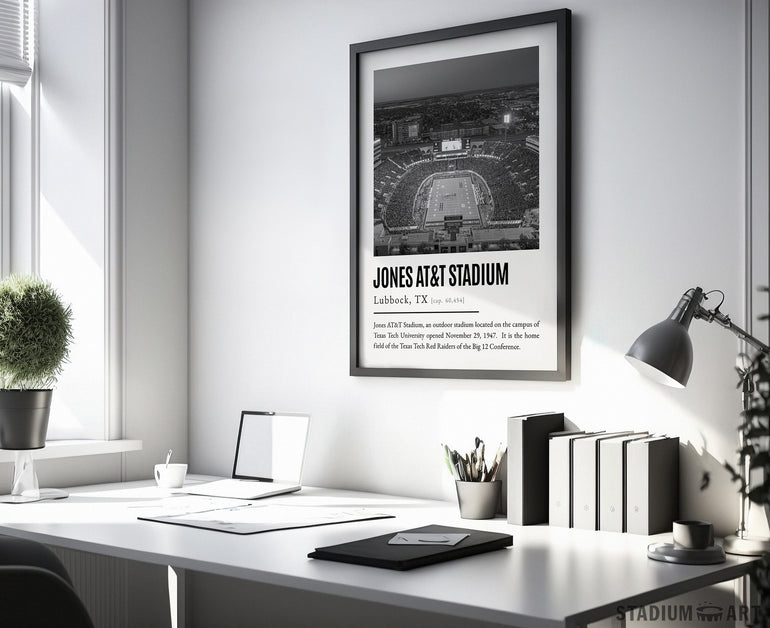 Jones ATT Stadium Print, Texas Tech Red Raiders Poster/Canvas, Aerial View, B&W Modern Art, Football Wall Art Decor, Game Day Keepsake