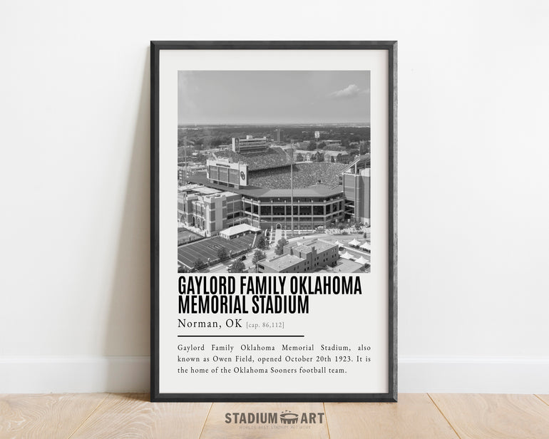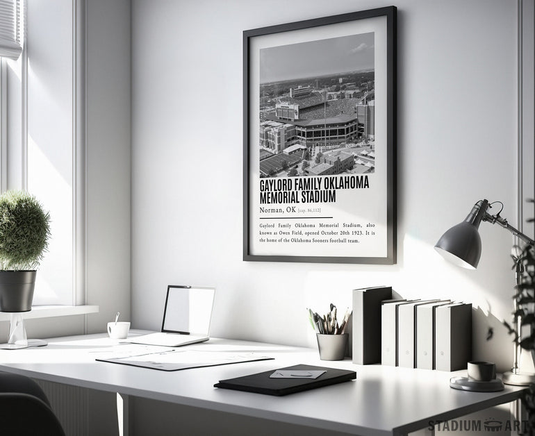 Owen Field Print, Oklahoma Sooners Poster/Canvas, Aerial View, B&W Modern Art, Football Wall Art Decor, Game Day Keepsake