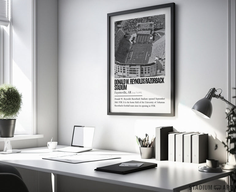Razorback Stadium Print, Arkansas Razorbacks Poster/Canvas, Aerial View, B&W Modern Art, Football Wall Art Decor, Game Day Keepsake