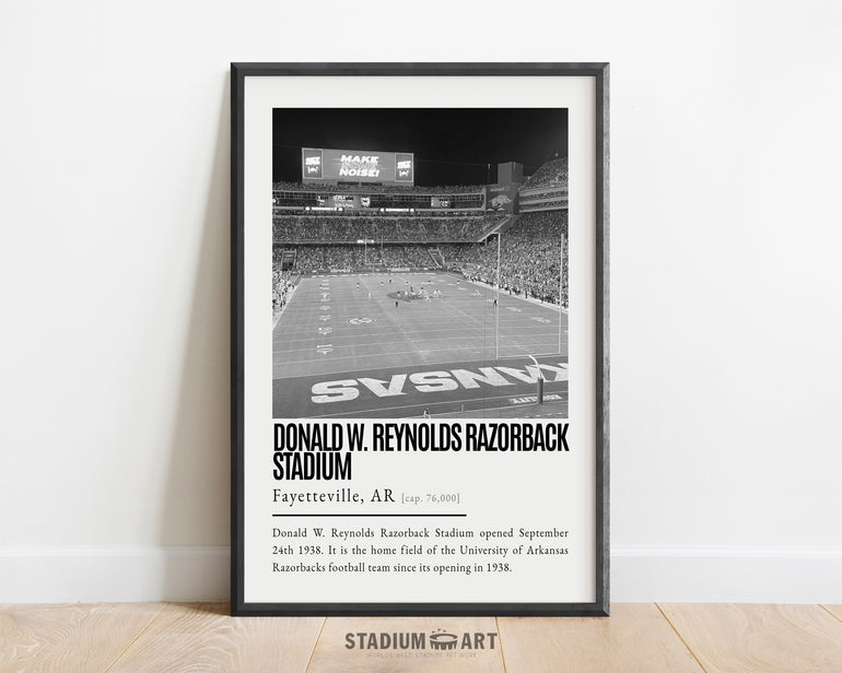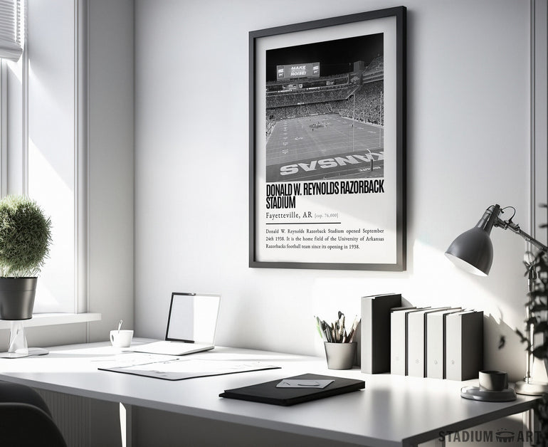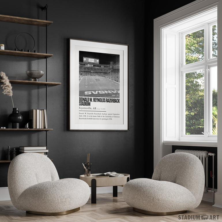 Razorback Stadium Print, Arkansas Razorbacks Poster/Canvas, Seat View, B&W Modern Art, Football Wall Art Decor, Game Day Keepsake