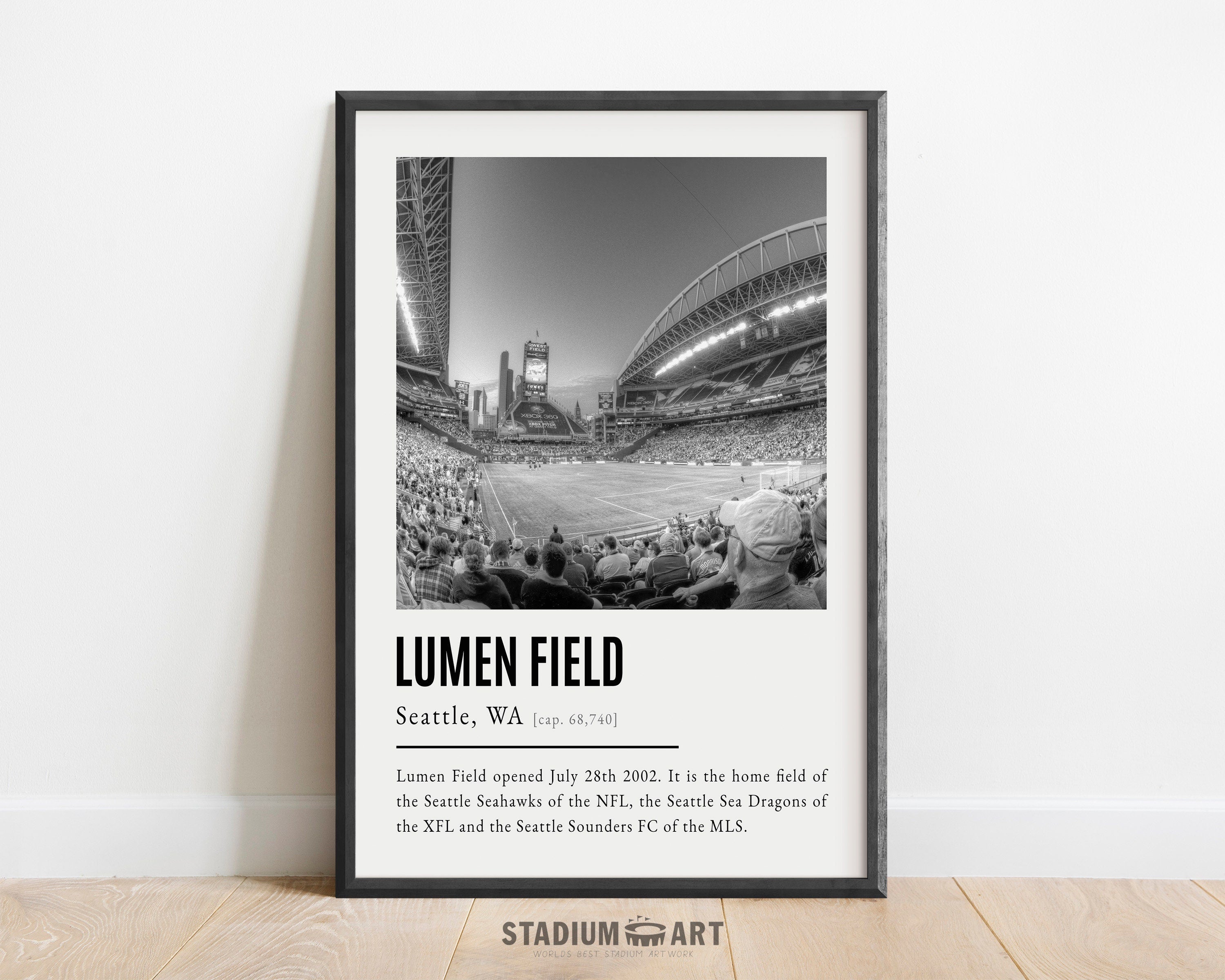 Lumen Field Print, Seattle Seahawks Poster/Canvas, Seat View (v2), B&W Modern Football Wall Art Decor, Game Day Keepsake
