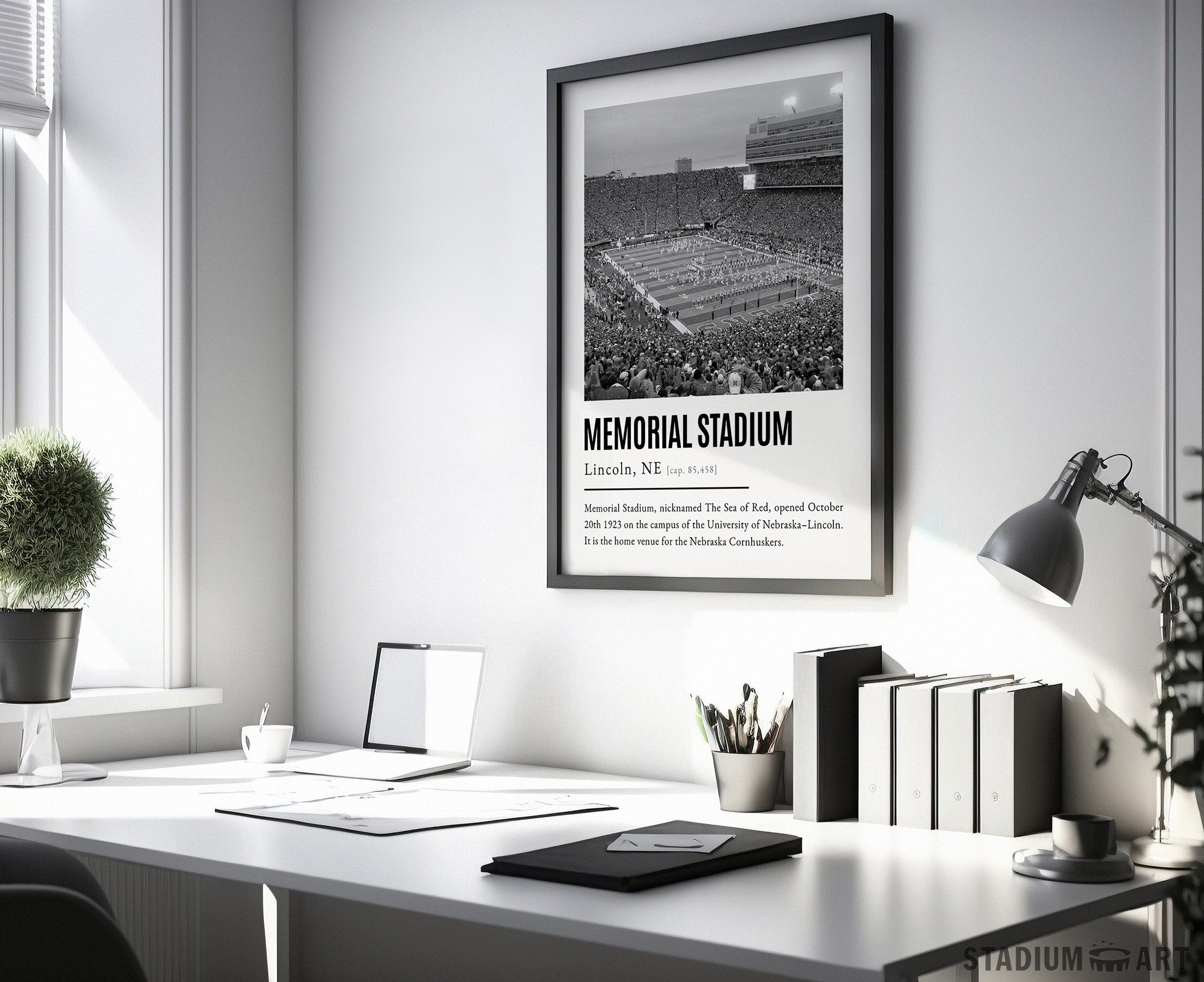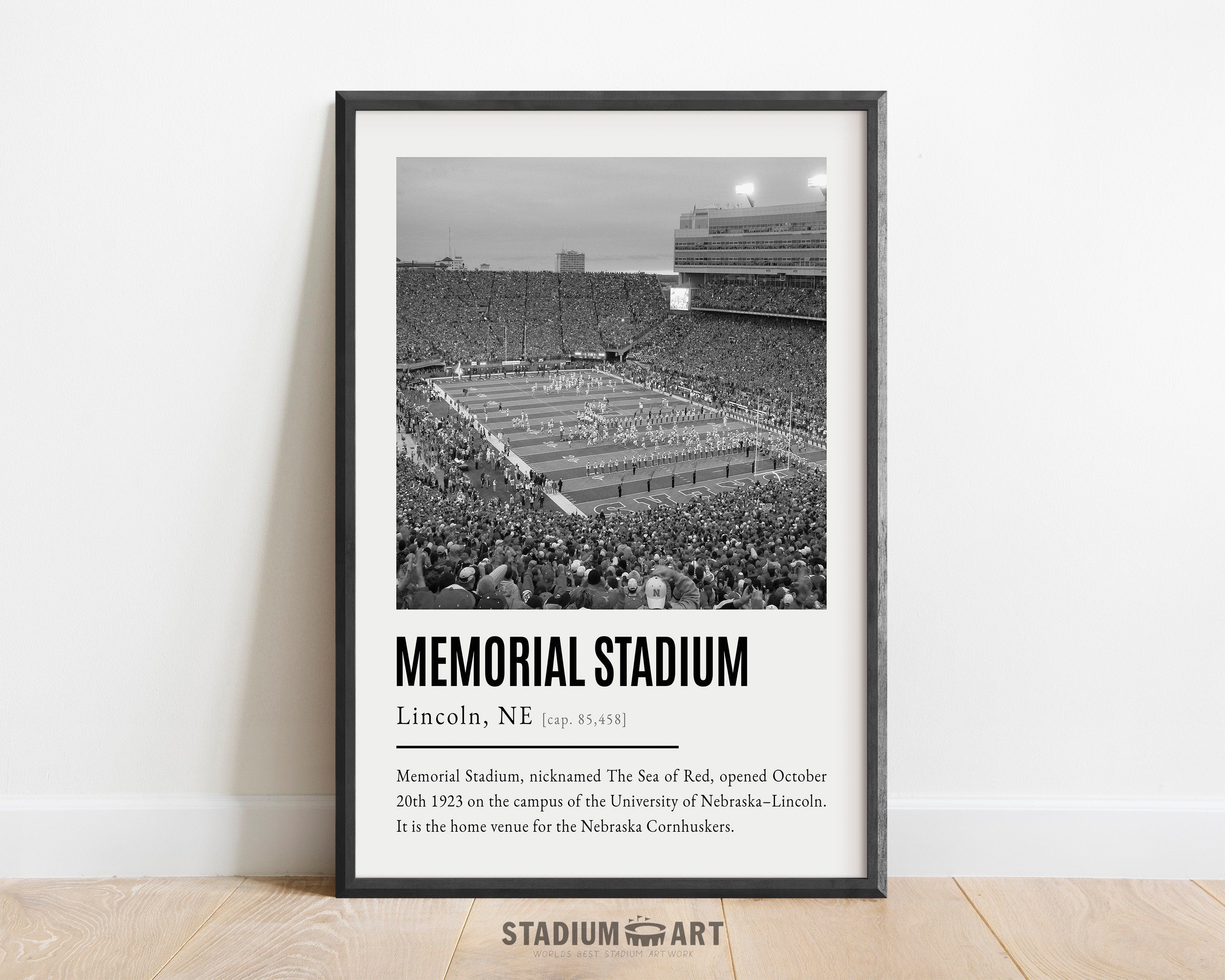 Memorial Stadium Print, Nebraska Cornhuskers Poster/Canvas, Seat View, B&W Modern Football Wall Art Decor, Game Day Keepsake