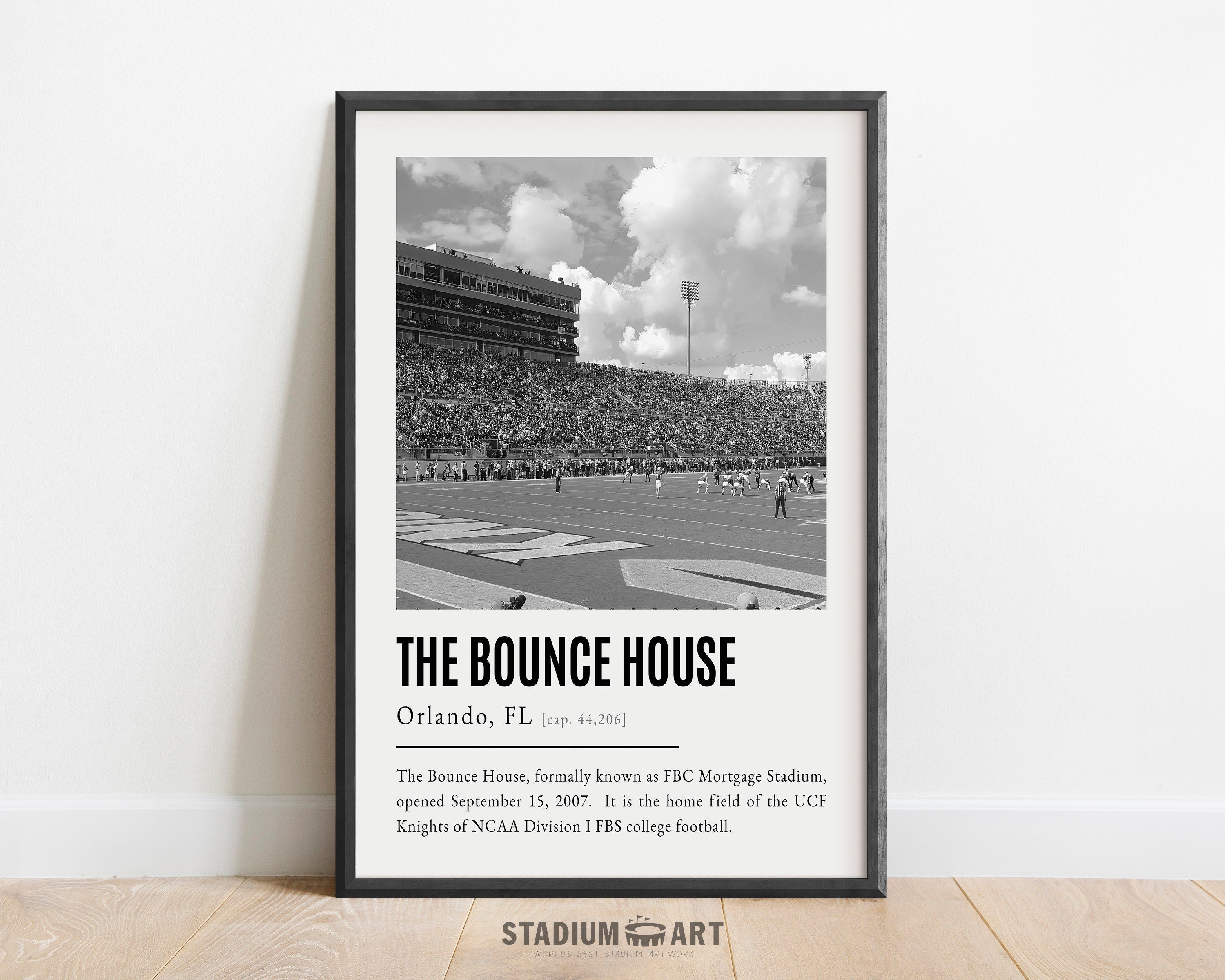 The Bounce House Print, UCF Knights Poster/Canvas, Seat View, B&W Modern Football Wall Art Decor, Game Day Keepsake
