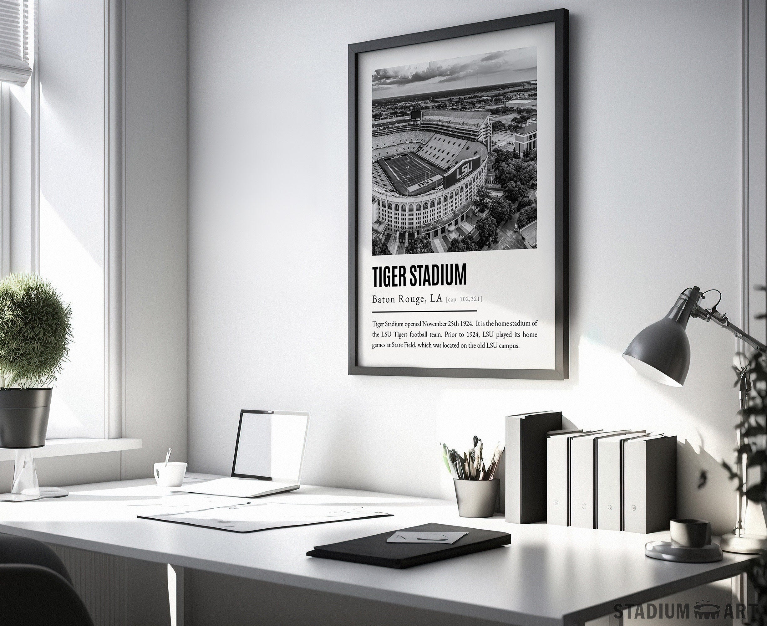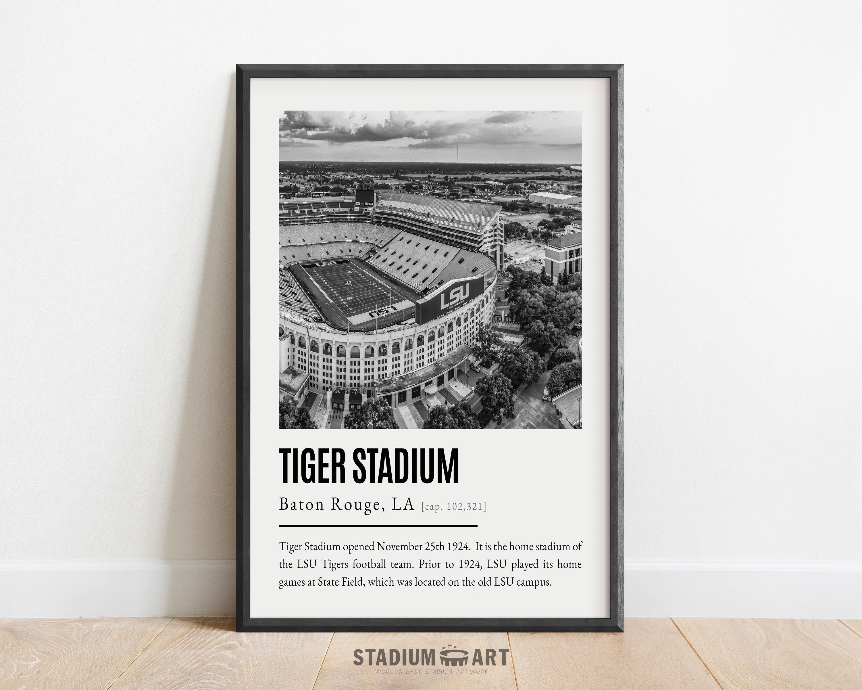 Tiger Stadium Print, LSU Tigers Poster/Canvas, Aerial View, B&W Modern Football Wall Art Decor, Game Day Keepsake