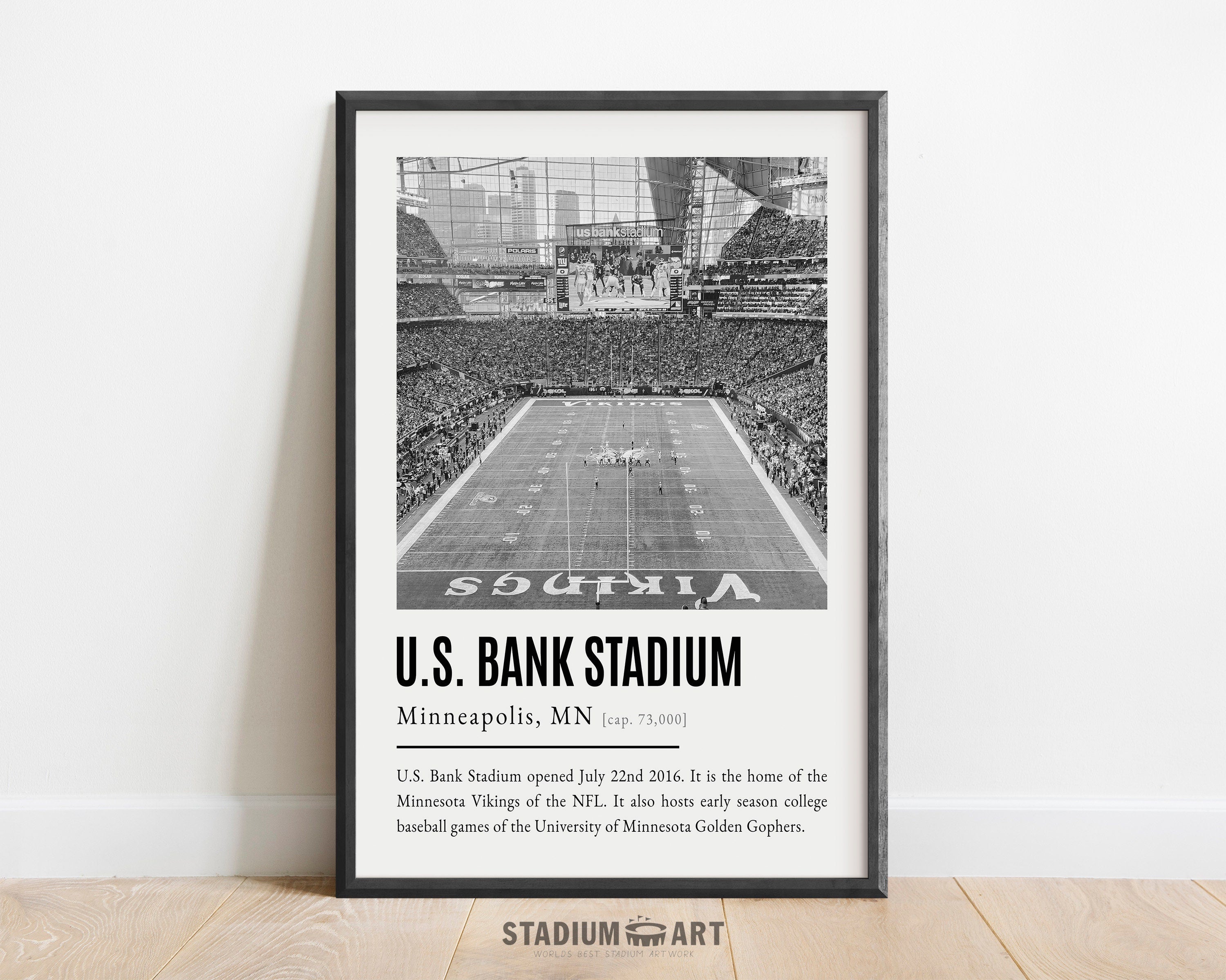 U.S. Bank Stadium Print, Minnesota Vikings Poster/Canvas, Seat View (v2), B&W Modern Football Wall Art Decor, Game Day Keepsake