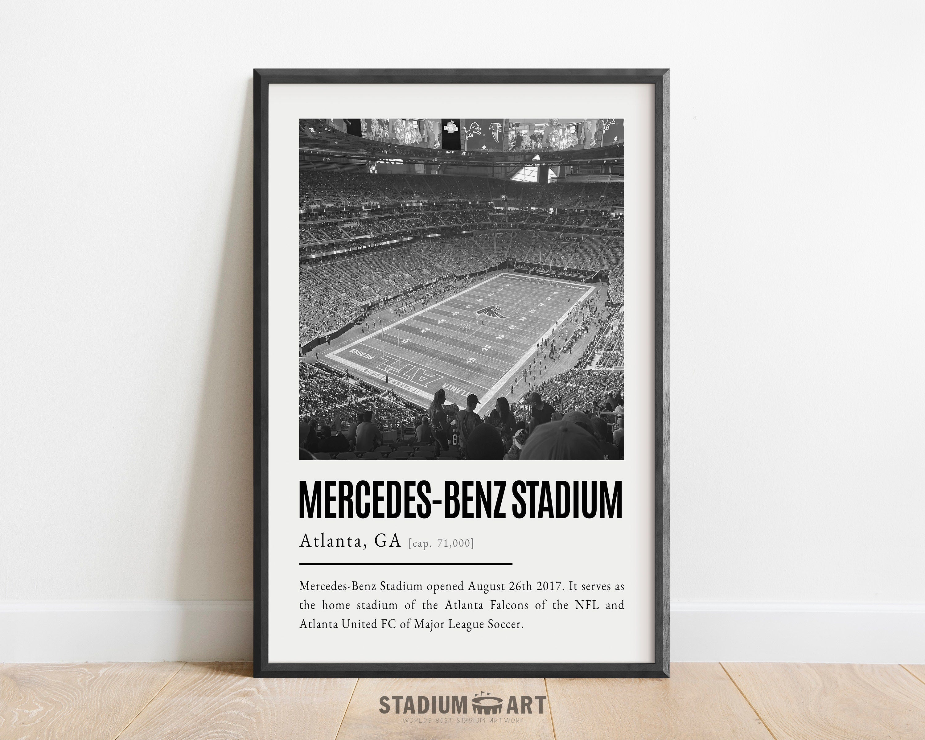 Mercedes-Benz Stadium Print, Atlanta Falcons Poster/Canvas, Seat View, B&W Modern Football Wall Art Decor, Game Day Keepsake