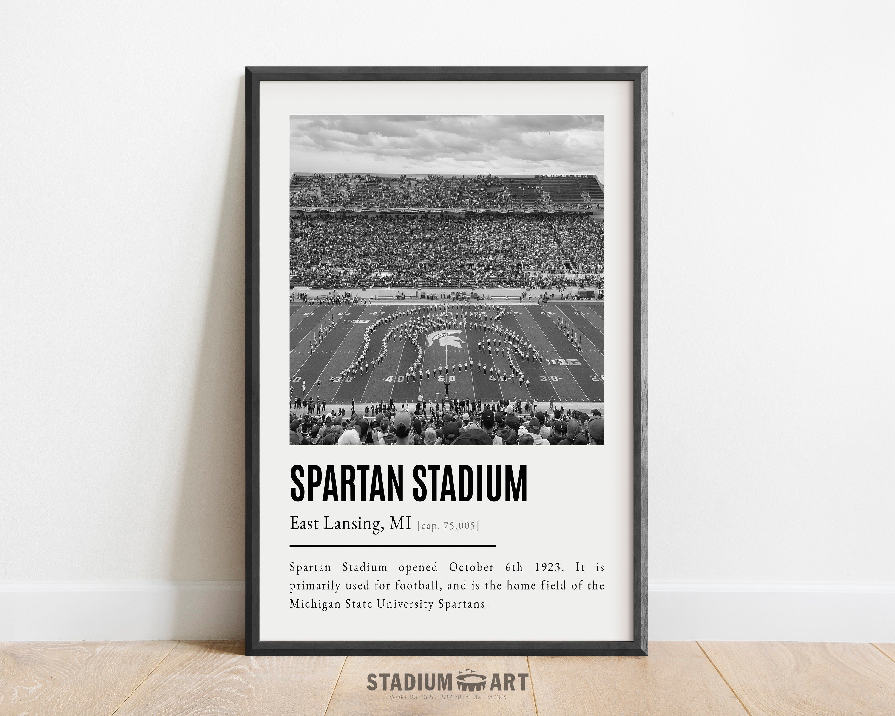Spartan Stadium Print, Michigan State University Spartans Poster/Canvas, Seat View, B&W Modern Football Wall Art Decor, Game Day Keepsake