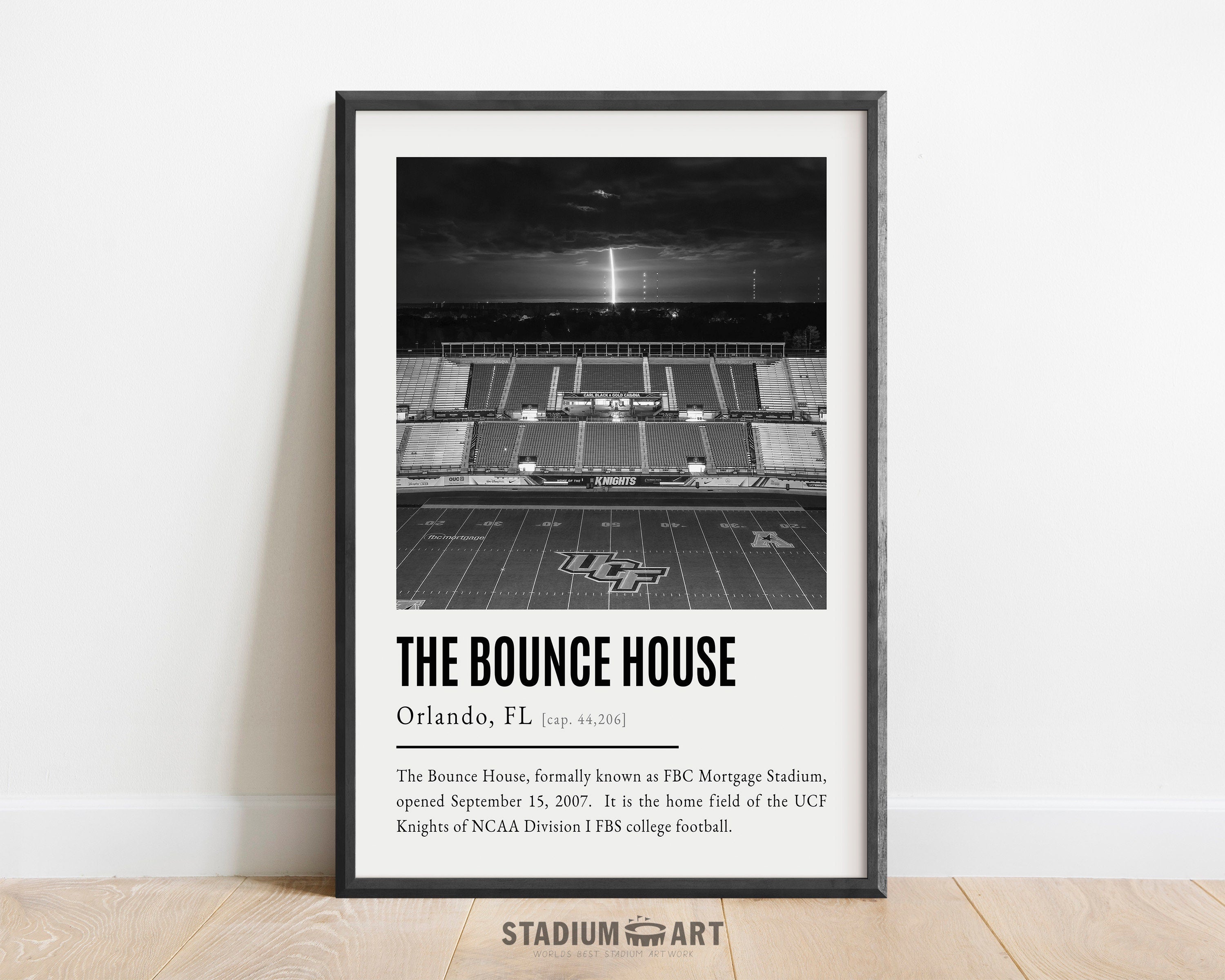 The Bounce House Print, UCF Knights Poster/Canvas, Seat View 'Rocket Launch', B&W Modern Football Wall Art Decor, Game Day Keepsake