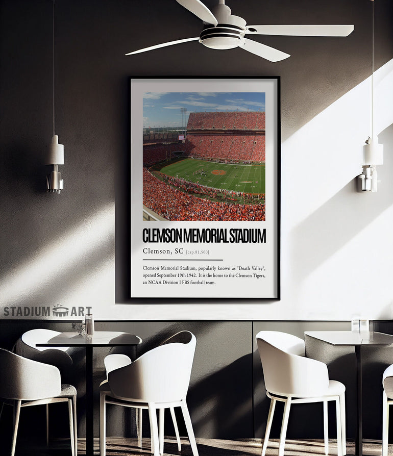 Clemson Memorial Stadium Print, Clemson Tigers Poster/Canvas, Seat View, Modern Art, Football Wall Art Decor, Game Day Keepsake