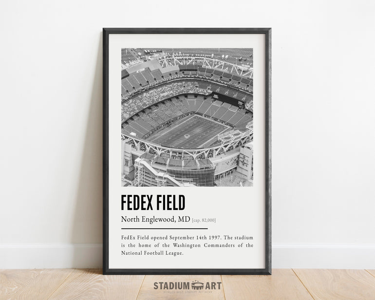 FedEx Field Print, Washington Commanders Poster/Canvas, Aerial View, B&W Modern Art, Football Wall Art Decor, Game Day Keepsake