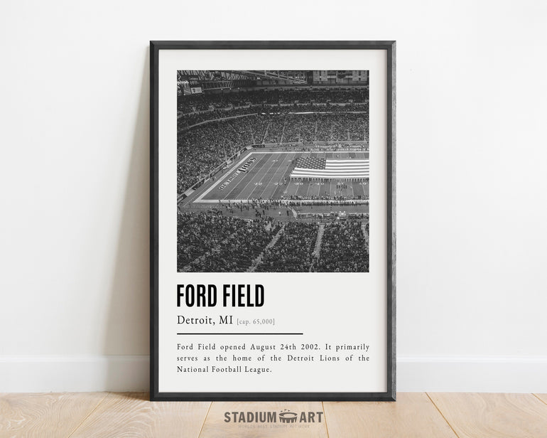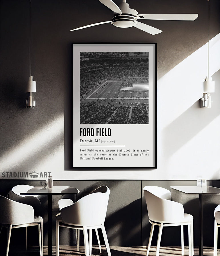 Ford Field Print, Detroit Lions Poster/Canvas, Seat View (v2), B&W Modern Art, Football Wall Art Decor, Game Day Keepsake